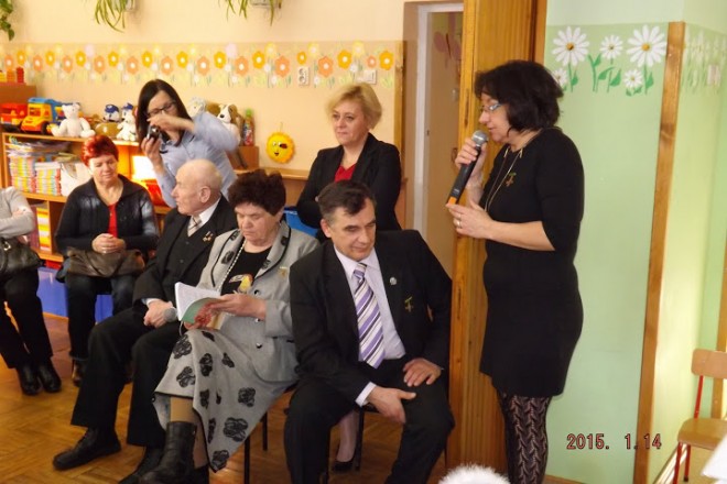 Na zaproszenie dyrekcji członkowie Zarządu Oddziału Związku Sybiraków w Przemyślu w dniu 14 stycznia 2015 r. uczestniczyli w spotkaniu z dziećmi Przedszkola nr 3 w Przemyślu. Dzieci, pięknie przebrane za postacie z szopki, przedstawiły jasełka. Na twarzach kilkuletnich aktorów widać było, że są bardzo przejęci i z wielkimi emocjami przeżywają swoje role. Również wśród Sybiraków można było zauważyć wzruszenie i ocieranie łez ukradkiem. „Nasza wizyta u przedszkolaków może kogoś zdziwić, ale uważamy, że każde pokolenie powinno znać historię naszej ojczyzny i należy wychowywać je w duchu patriotyzmu, miłości do ojczyzny” – powiedziała Stanisława Żak, członek Zarządu Oddziału Związku Sybiraków w Przemyślu. Nie był to pierwszy kontakt z dziećmi z tego przedszkola. Za sprawą wychowawczyni Teresy Bobko, córki Sybiraczki Ludwiki Turowskiej, dzieci bywały już z jasełkami na naszych spotkaniach opłatkowych. Prezes Joanna Preiss i Stanisława Żak opowiedziały dzieciom o tym, jak wyglądały wigilie na Syberii, co wtedy Sybiracy czuli jako dzieci. Na zakończenie spotkania na ręce dyrektor Urszuli Dzierzgowskiej-Rudnik dla całego grona pedagogicznego zostały złożone podziękowania i symboliczny upominek w postaci książki „Sybiracy i Syberia” opisującej losy zesłańców. Teresie Bobko dziękujemy za zaproszenie, przygotowanie dzieci do występu oraz za przekazywanie młodemu pokoleniu pamięci o losach Sybiraków na zesłaniu. W spotkaniu udział wzięli (od tyłu od prawej): Stanisława Żak, Bronisław Klepacki, Teresa Staś, Jadwiga Maszczak, Mieczysław Tłuczek, Maria Wielgosz, Krystyna Jasz, Turowska Ludwika, Joanna Preiss, Jan Filozof, Aneta Bodziak Jasełka w wykonaniu młodych artystów z Przedszkola nr 3 w Przemyślu Przemawia prezes Zarządu Oddziału Joanna Preiss, w tle (od lewej) Aneta Bodziak, Ludwika Turowska, Mieczysław Tłuczek Od prawej stoją wychowawczyni grupy w przedszkolu Teresa Bobko (z mikrofonem), obok niej dyrektor Urszula Dzierzgowska-Rudnik, siedzą: Jan Filozof, Maria Wielgosz, Jan Buć, Krystyna Jasz Oprac. i zdjęcia: Marian Boczar, sekretarz Zarządu Oddziału ZS w Przemyślu Przeczytano 30 Nawigacja wpisu Odznaczenia w Kaliszu Pilskie Spotkanie Pokoleń, czyli Sybiraków pomysł na pamięć