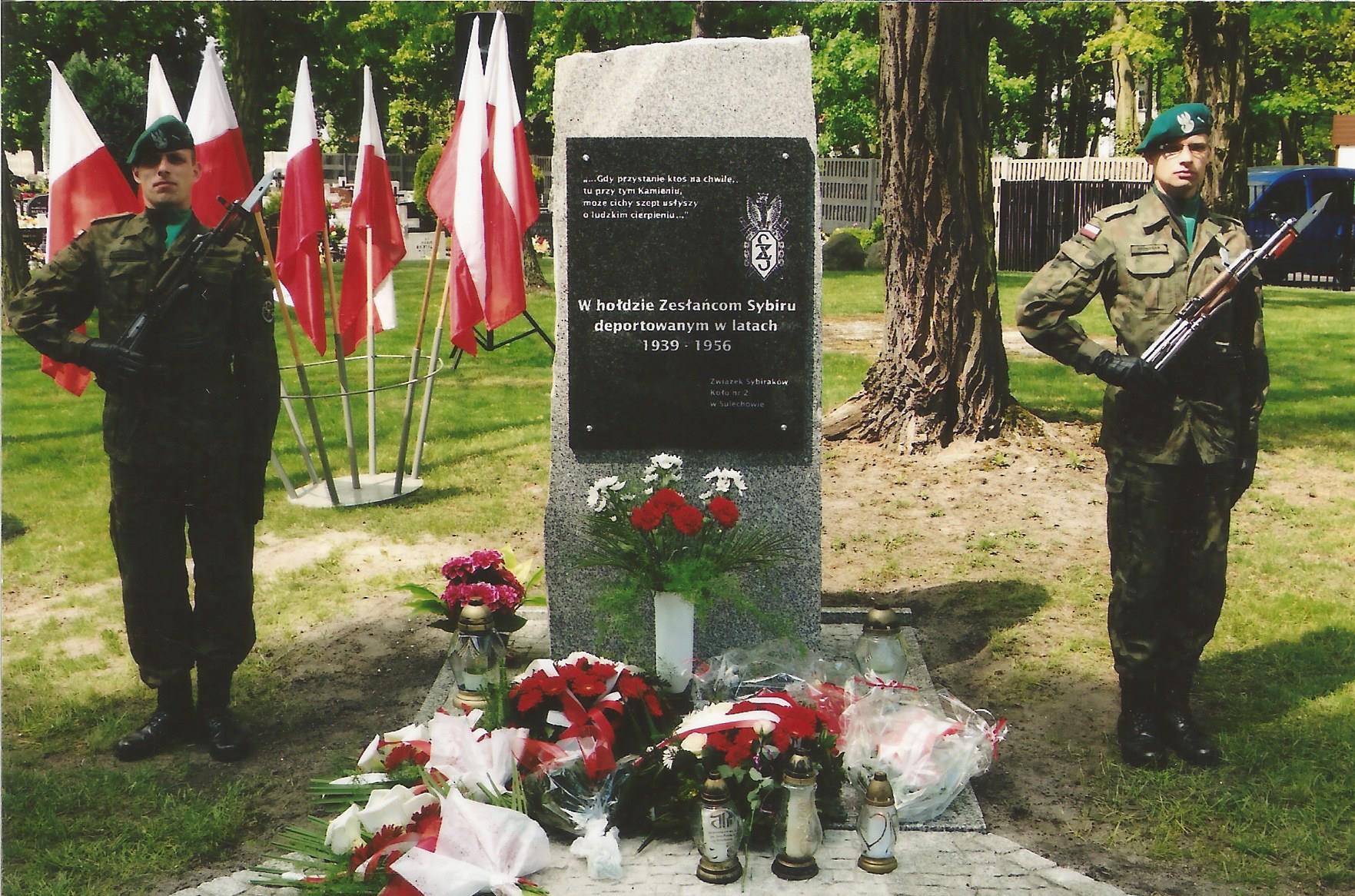 W dniu 8 maja 2015 r. na Cmentarzu Komunalnym w Sulechowie dokonano uroczyście odsłonięcia i poświęcenia obelisku zaprojektowanego przez prezesa Zarządu Koła nr 2 Związku Sybiraków (Oddział w Zielonej Górze) Ryszarda Greszczyka. Projekt powstał dzięki wsparciu finansowemu burmistrza Sulechowa Ignacego Odważnego oraz Ryszarda Greszczyka. Należy podziękować za społeczny nadzór nad posadowieniem obelisku Antoniemu Lechkiemu i Józefowi Misiewiczowi oraz pozostałym wspaniałym sympatykom Związku Sybiraków. W uroczystości udział wzięli: burmistrz Sulechowa Ignacy Odważny, były burmistrz Sulechowa Roman Rakowski, przewodniczący Rady Miejskiej Stanisław Kaczmar, przewodniczący Rady Powiatu Edwin Łazicki, były wójt gminy Trzebiechów Stanisław Drobek, proboszcz ks. Janusz Mikołajewicz, zastępca dowódcy 5. Lubuskiego Pułku Artylerii ppłk Robert Majdecki, prezes Zarządu Oddziału Związku Sybiraków w Zielonej Górze Wacław Mandryk, wiceprezes Zarządu Oddziału Marian Szymczak. Kompania Honorowa Wojska Polskiego i 5. Lubuskiego Pułku Artylerii z Sulechowa wystawiła wartę honorową przy pomniku. Przybyły poczty sztandarowe Koła ZS w Sulechowie, Oddziału ZS w Zielonej Górze, Związku Kombatantów RP i Byłych Więźniów Politycznych w Sulechowie, 5. Lubuskiego Pułku Artylerii, szkół podstawowych i gimnazjalnych. Przybyłych powitał prezes Zarządu Koła nr 2 Ryszard Greszczyk. Wygłosił przemówienie okolicznościowe, w którym poruszył temat współpracy Koła z młodzieżą szkolną, studentami i organizacjami kombatanckimi, władzami samorządowymi, wnukami i potomkami Sybiraków. Prezes Zarządu Oddziału Związku Sybiraków w Zielonej Górze Wacław Mandryk mówił o sytuacji bytowej Sybiraków i działaniach Koła w tej kwestii, o patriotyzmie i miłości sulechowskich Sybiraków do ojczyzny. Odsłonięty obelisk przypomina sopkę – wulkan (nazwę Sopka nosił także obóz na Kołymie). Umieszczona jest na nim tablica z napisem: „…Gdy przystanie ktoś na chwilę, tu przy tym kamieniu może cichy szept usłyszy o ludzkim cierpieniu. W hołdzie Zesłańcom Sybiru deportowanym w latach 1939–1956 Związek Sybiraków Koło nr 2 w Sulechowie”. Osoby zasłużone zostały odznaczone Odznaką Honorową Sybiraka. Byli to burmistrz Sulechowa Ignacy Odważny oraz były wójt gminy Trzebiechów Stanisław Drobek, który podziękował w imieniu odznaczonych. Zesłana na Kołymę Dana Lechka odczytała wiersz „Poległym i pomordowanym na Wschodzie” Mariana Jonkajtysa: Przechodniu Przerwij marsz swój I zdejm nakrycie głowy Przed Pomnikiem-Symbolem Ofiar Anonimowych… Tych – Co za Polskę, Wiarę I za honor Narodu Oddali swoje życie W Czerwonych Kaźniach Wschodu… Zesłaniec z Kołymy Józef Misiewicz odczytał wiersz „Listy z Kołymy” Mariana Jonkajtysa. Oba utwory przejrzyście pokazują losy zesłańców i ich rodzin, słuchający ich mieli łzy w oczach. Delegacje złożyły pod obeliskiem wiązanki kwiatów oraz zapaliły znicze. Prezes Zarządu Koła Ryszard Greszczyk podziękował wszystkim. Powiedział: „My wszyscy ze swoją katorżniczą pracą, losem, krzyżem i piętnem Syberii, patriotyzmem do Rzeczypospolitej tu obecni winni jesteśmy pamięć tym, którzy nie wytrwali, pozostali tam. Są to bezimienni bohaterowie, o których pamięć należy przywrócić i pielęgnować. To oni ponieśli największą ofiarę – ofiarę życia. I chociaż minął długi okres od tamtych dni i nie było im dane wrócić do wymarzonej ojczyzny, pamięć o nich jest i będzie wciąż żywa. Cześć ich pamięci!”. Burmistrz Sulechowa Ignacy Odważny podkreślił poświęcenie Sybiraków dla Polski, bowiem swe cierpienie na zesłaniu ofiarowali Bogu i ojczyźnie. Poświęcenia obelisku dokonał proboszcz ks. Janusz Mikołajewicz. Odmówił modlitwę za tych, którzy pozostali w wiecznej syberyjskiej zmarzlinie, a także za tych, którzy wrócili, prosząc, by pamiętali i przekazywali pamięć o zesłaniu, w szczególności swoim dzieciom i wnukom. Na zakończenie uroczystości odsłonięcia obelisku Zesłańcom Sybiru prezes Ryszard Greszczyk i burmistrz Ignacy Odważny zaprosili wszystkich uczestników na obiad w kawiarni Delicjusz. Warta honorowa przy nowo postawionym pomniku w hołdzie Zesłańcom Sybiru Przy pomniku w pierwszym rzędzie stoją (od lewej): prezes Zarządu Koła nr 2 w Sulechowie Ryszard Greszczyk, Henryk Bartoszewicz i wiceprezes Zarządu Koła Dana Lechka; w drugim rzędzie były burmistrz Sulechowa Roman Rakowski, prezes Zarządu Oddziału Wacław Mandryk, wiceprezes Zarządu Oddziału Marian Szymczak i przewodniczący Rady Miasta Sulechów Stanisław Kaczmar Złożenie kwiatów – od prawej: wiceprezes Zarządu Oddziału ZS w Zielonej Górze Marian Szymczak, prezes Zarządu Koła w Sulechowie Ryszard Greszczyk, wiceprezesi Zarządu Koła Józef Misiewicz, Dana Lechka i Kazimierz Jurkowski, prezes Zarządu Oddziału Wacław Mandryk, Robert Montwiłł Oprac.: Ryszard Greszczyk Przeczytano 87 Nawigacja wpisu Odznaczenia dla Sybiraków w Bystrzycy Kłodzkiej Wycieczka z Kalinowa do Warszawy „śladami Sybiraków”