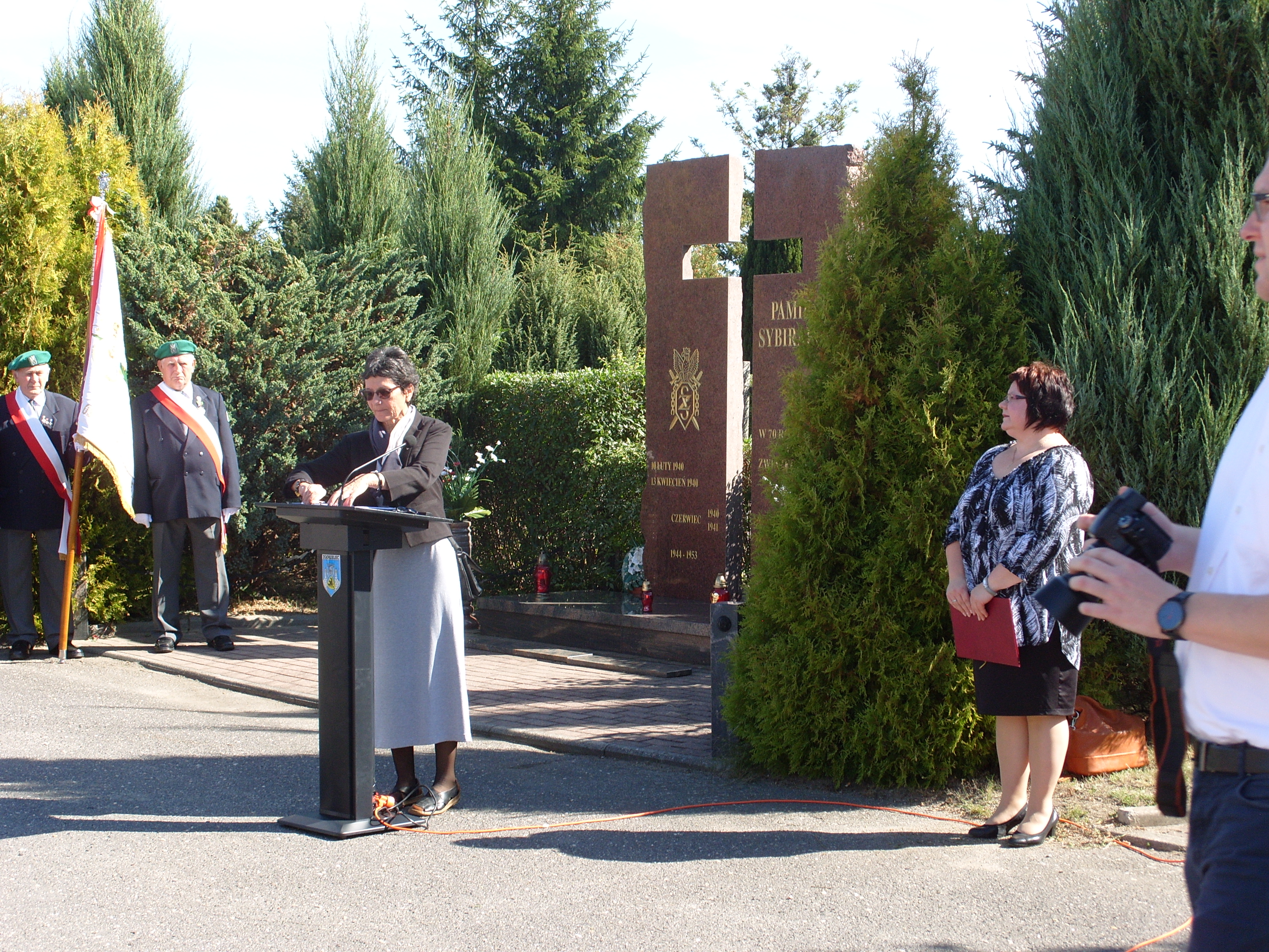 Pamięć o cierpieniu tych, którzy przeżyli przenieśmy przez pokolenia fragment apelu poległych W dniu 17 września 2015 r. uczniowie i pracownicy oświaty Gminy i Miasta Zgorzelec po raz piąty uczestniczyli w Sybirackim Marszu Pamięci. W tym roku udało się zebrać rekordową liczbę dzieci i młodzieży oraz towarzyszących im dorosłych – nauczycieli i opiekunów – około 300 osób. Na szczególny szacunek zasługiwały najmłodsze dzieci, tj. uczniowie ze szkół podstawowych w Łagowie, Osieku, Trójcy i Żarskiej Wsi. Z placu przy Gimnazjum im. Sybiraków w Jerzmankach wyruszyliśmy kilka minut po godz. 11 00. Niepowtarzalność chwili podkreślała Orkiestra KWB Turów, która prowadziła nas przez Jerzmanki, wyciągając z domów mieszkańców wsi i inne osoby znajdujące się akurat w okolicy. Marszowym tempem pokonaliśmy trasę do Zgorzelca i pod pomnikiem Orła spotkaliśmy się z zaproszonymi gośćmi – Sybirakami i honorowymi Sybirakami, samorządowcami, reprezentantami duchowieństwa, służb mundurowych, kombatantami i mieszkańcami miasta, którzy zechcieli wziąć udział w naszej uroczystości. Kilka minut po południu wspólnie przemaszerowaliśmy przez Cmentarz Komunalny, aby pod pomnikiem Sybiraków oddać im cześć. Wysłuchaliśmy Hymnu Sybiraków. Następnie wszystkich powitały dyrektor Gimnazjum im. Sybiraków w Jerzmankach Renata Mikołajów i sekretarz Zarządu Koła Związku Sybiraków w Zgorzelcu Larysa Ługowska. Były okolicznościowe przemówienie burmistrza Zgorzelca Rafała Gronicza, modlitwa za Sybiraków poprowadzona przez ks. dziekana Macieja Wesołowskiego, apel poległych odczytany przez Sybiraka Rafała Paszka oraz złożenie pod pomnikiem kwiatów i zniczy przez delegacje reprezentujące uczestników Marszu. Na koniec Orkiestra KWB Turów zagrała Rotę. Wyrazy podziwu i podziękowania kierujemy do wszystkich uczestników uroczystości, tym bardziej że warunki atmosferyczne były skrajne i wielu dawały się we znaki. Również słowa podziękowania kierujemy do zabezpieczających Marsz funkcjonariuszy policji oraz młodzieży z klasy ratownictwa medycznego z Zespołu Szkół Zawodowych i Licealnych im. Górników i Energetyków Turowa w Zgorzelcu, którzy nie tylko uczestniczyli w Marszu z Jerzmanek do Zgorzelca, ale również opiekowali się osobami, które słabły w czasie upału. Jak widać tegoroczny Marsz był wielkim wyzwaniem w każdym względzie, choć jest on tylko namiastką tego, co przed 75 laty musieli przeżywać wypędzani z domów Sybiracy. Jesteśmy dumni, że jubileuszowy – V Marsz Sybiracki Ziemi Zgorzeleckiej zaangażował tak dużą liczbę osób – dzieci i dorosłych. Właśnie w ten sposób chcemy przenosić przez pokolenia zobowiązanie, jakie podjęliśmy ponad pięć lat temu, przyjmując za patrona szkoły Sybiraków. Ulicami Jerzmanek przeszedł V Marsz Sybiracki Ziemi Zgorzeleckiej Kolumnie marszowej przewodziła Orkiestra KWB Turów Główne uroczystości odbyły się przy pomniku Sybiraków na Cmentarzu Komunalnym Zebranych przywitały sekretarz Zarządu Koła ZS w Zgorzelcu Larysa Ługowska (przemawia) i dyrektor Gimnazjum im. Sybiraków w Jerzmankach Renata Mikołajów (z prawej strony) W Marszu udział wzięli przedstawiciele władz samorządowych, duchowieństwa, Sybiracy i kombatanci, mieszkańcy oraz bardzo licznie młodzież szkolna Oprac.: Katarzyna Brauza, nauczycielka historii w Gimnazjum im. Sybiraków w Jerzmankach Przeczytano 40 Nawigacja wpisu Uroczyste otwarcie Muzeum Katyńskiego w Warszawie I Marsz Pamięci Zesłańców Sybiru w Piławie Górnej
