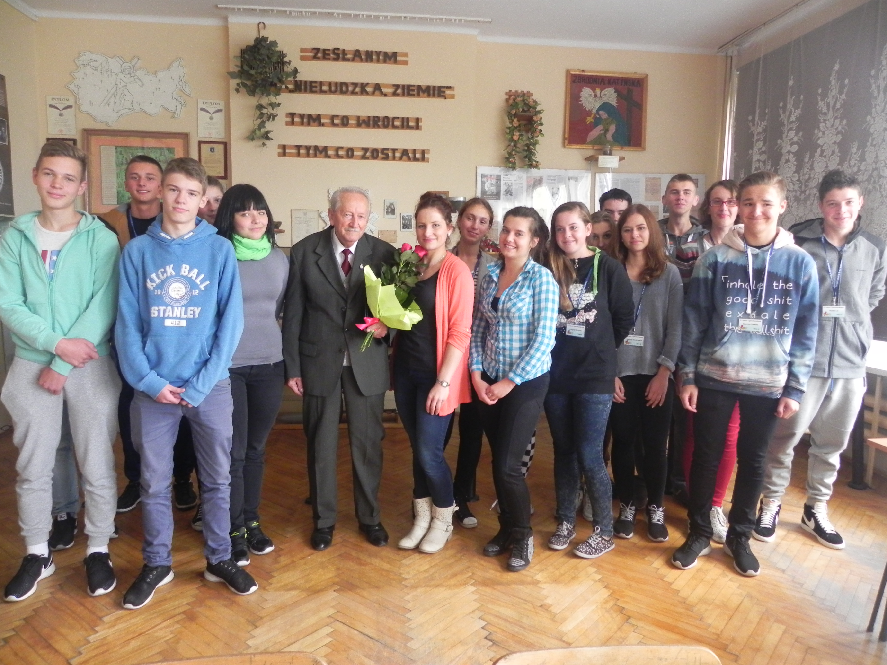 „Sybir nie jest pojęciem tylko geograficznym, bardziej symbolem represji caratu, a później Stalina i radzieckiej machiny wobec Polski i jej obywateli. Dlatego więzienia, obozy, zsyłki na całym terytorium Rosji, a później ZSRR, nazywamy »Sybirem«, a ofiary – »Sybirakami«. W czasach dzisiejszych nie ma cenzury. Można mówić i pisać o wszystkim. Ważne tylko, aby było komu słuchać i czytać” – to słowa Kazimierza Korczyńskiego, prezesa Zarządu Oddziału Związku Sybiraków w Nowym Sączu, z przedmowy do książki „Sybiracy na Sądecczyźnie”. Tradycją Zespołu Szkół nr 2 w Nowym Sączu są spotkania uczniów klas pierwszych z patronem. W okresie od 22 września do 2 października 2015 r. naszymi gośćmi byli: Kazimierz Korczyński, Aleksandra Potoczek, Danuta Rybicka oraz Stanisław Faliński. Młodzież miała okazję zapoznać się z historią zsyłek Polaków na „nieludzką ziemię”, posłuchać opowieści o katordze, niewyobrażalnym cierpieniu fizycznym i psychicznym tysięcy ludzi oraz poznać powojenne losy Sybiraków i ich działalność w wolnej Polsce. Jesteśmy wdzięczni, że zaproszeni Sybiracy chętnie nas odwiedzają i dzielą się wspomnieniami. To żywa lekcja historii, która na zawsze pozostaje w pamięci. Uczniowie Zespołu Szkół nr 2 w Nowym Sączu z Kazimierzem Korczyńskim, prezesem Zarządu Oddziału ZS w Nowym Sączu Danuta Rybicka podczas lekcji Sybiraczka Aleksandra Potoczek wraz z uczniami Stanisław Faliński w Zespole Szkół nr 2 Oprac.: Agata Gądek, zdjęcia Renata Skowron Przeczytano 80 Nawigacja wpisu Dziesięć lat z patronem – Sybirakami Obchody Dnia Jedności Kresowian w Warszawie