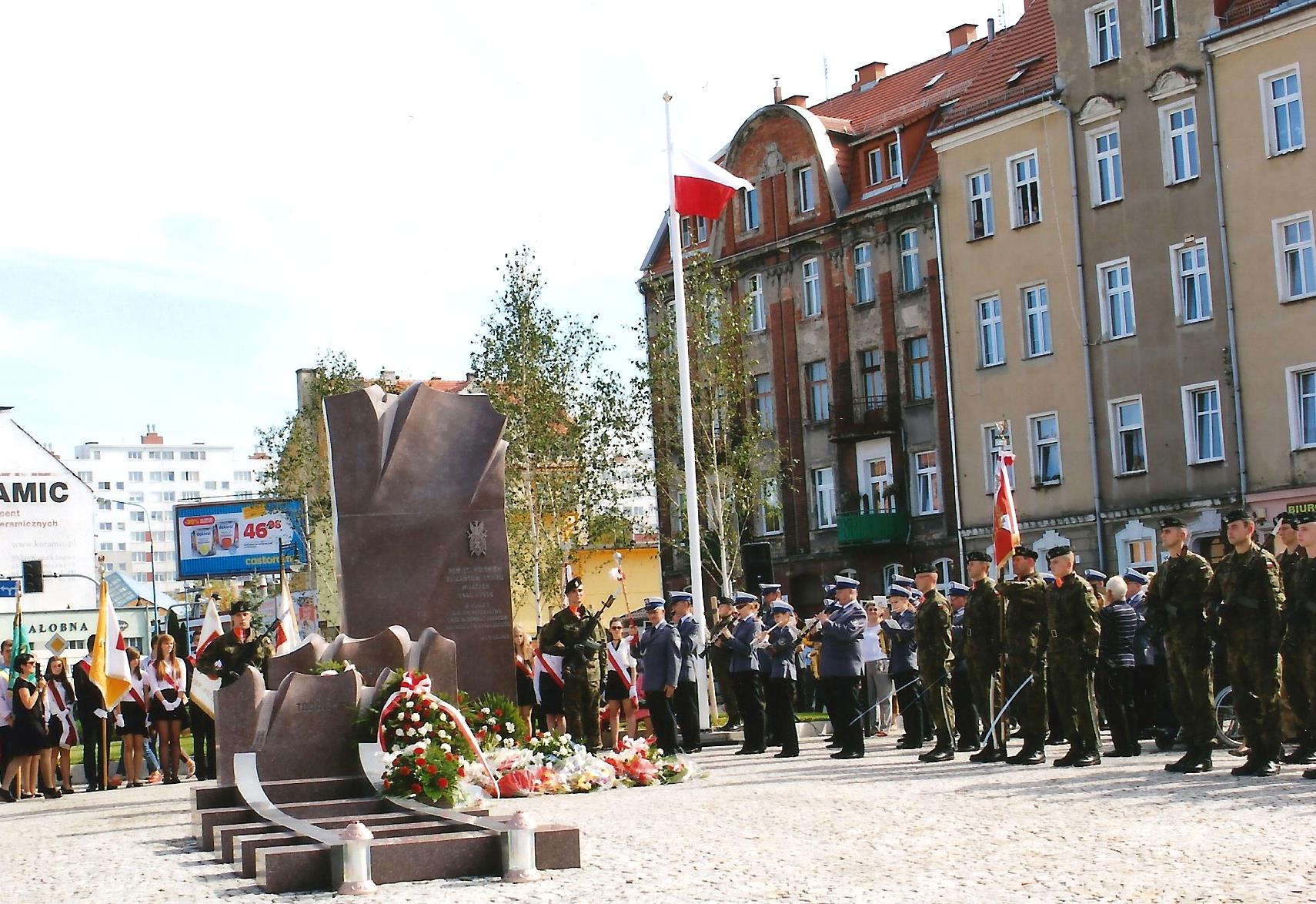Na terenie Oddziału Związku Sybiraków w Legnicy Dzień Sybiraka był obchodzony w uroczysty sposób. We wszystkich Kołach uroczystość rozpoczynała msza święta w intencji wszystkich Sybiraków zmarłych i żyjących. Na szczególne wyróżnienie zasługują obchody w takich Kołach jak Legnica, Głogów, Jawor, Ścinawa, Złotoryja. W Legnicy 17 września 2015 r., po nabożeństwie w kościele Świętej Trójcy, przy dźwiękach marszu w wykonaniu orkiestry policyjnej wszyscy udali się na pl. Sybiraków. Tam po przemówieniach nastąpiło odsłonięcie zaprojektowanego przez legnickiego artystę Grzegorza Niemyjskiego pomnika Zesłańcom Sybiru, którego dokonali: prezydent miasta Legnicy Tadeusz Krzakowski, prezes Zarządu Fundacji KGHM Polska Miedź Marek Bestrzyński, przewodniczący Rady Miasta Wacław Szetelnicki, prezes Zarządu Koła Związku Sybiraków w Legnicy Alfreda Dąbrowska i wiceprezes Zarządu Koła Tadeusz Koszarski. Pomnik poświęcili JE bp diecezji legnickiej Zbigniew Kiernikowski, kapelan legnickich Sybiraków ks. prałat Władysław Jóźków oraz duchowni innych wyznań. Część oficjalną zakończyły apel, salwa honorowa i złożenie kwiatów pod pomnikiem. Uczestnicy uroczystości utrzymali dwie publikacje wydane z okazji odsłonięcia pomnika – „Przeżyli, by pamiętać” przygotowaną we współpracy z Legnicką Biblioteką Publiczną oraz Towarzystwem Przyjaciół Nauk w Legnicy ze środków Koła Związku Sybiraków w Legnicy oraz „Legniccy Sybiracy” Marii Kubasik – powstałą z inicjatywy Stowarzyszenia Pamięć i Dialog, przy dużym zaangażowaniu autorki będącej członkiem stowarzyszenia. Ponadto zebranym wręczono znaczek pamiątkowy. Uroczystości towarzyszyła wystawa przygotowana przez Urząd Miasta w Legnicy według projektu Marii Kubasik, prezentująca pamiątki z zesłania dostarczone przez Oddział ZS w Legnicy. Wystawa eksponowana była w dniach 17 września–10 listopada 2015 r. na Rynku w Legnicy i cieszyła się dużym zainteresowaniem mieszkańców. Obchody związane z 76. rocznicą napaści Związku Radzieckiego na Polskę w Głogowie rozpoczęły się mszą świętą polową, odprawioną przy pomniku Sybiraków znajdującym się przy kościele św. Maksymiliana Marii Kolbego. Nabożeństwo w intencji Sybiraków i ich rodzin celebrował proboszcz ks. Zbigniew Walaszka w asyście głogowskich księży. Po mszy rozpoczęły się uroczystości patriotyczne, na które licznie przybyły delegacje organizacji społecznych, instytucji, szkół, jednostek mundurowych, radni miejscy i powiatowi oraz przedstawiciele lokalnych władz. Jak co roku uczniowie najmłodszych klas Szkoły Podstawowej nr 13 w Głogowie pod kierunkiem opiekunki Agnieszki Karwat przygotowali krótki występ dla upamiętnienia tych trudnych dla Polaków wydarzeń. Wiersze i piosenki w wykonaniu dzieci wzbudziły wiele emocji i wzruszeń, szczególnie wśród seniorów. Całość uświetniła orkiestra Huty Miedzi Głogów, która zapewniła oprawę muzyczną uroczystości. W Kole ZS w Jaworze w dniu 22 września 2015 r. po modlitwie złożono kwiaty pod obeliskiem ku czci Sybiraków. Następnie wszyscy uczestnicy spotkania wraz z licznie zgromadzoną młodzieżą i pocztami sztandarowymi udali się do Teatru Miejskiego na część artystyczną przygotowaną przez młodzież szkolną. Pomnik Zesłańcom Sybiru odsłonięty w Legnicy Pomnik odsłonili (od lewej): przewodniczący Rady Miasta Wacław Szetelnicki, prezes Zarządu Fundacji KGHM Polska Miedź Marek Bestrzyński, prezydent Legnicy Tadeusz Krzakowski, wiceprezes Zarządu Koła ZS w Legnicy Tadeusz Koszarski i prezes Alfreda Dąbrowska Poświęcenie pomnika przez bp. legnickiego Zbigniewa Kiernikowskiego Złożenie kwiatów podczas uroczystości w Jaworze Oprac.: Maria Jurkiewicz, prezes Zarządu Oddziału ZS w Legnicy Przeczytano 90 Nawigacja wpisu Dzień Sybiraka w Kole ZS w Dusznikach-Zdroju Uroczystości rocznicowe w Gimnazjum nr 46 im. Szarych Szeregów w Warszawie