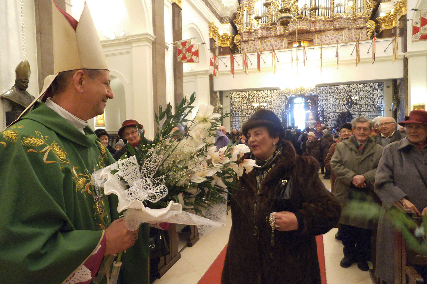 Mszą świętą koncelebrowaną w intencji 76. rocznicy pierwszej masowej wywózki polskich rodzin na Sybir, zorganizowaną przez Prezydium Zarządu Głównego i Oddział Warszawski w Katedrze Polowej Wojska Polskiego w dniu 7 lutego 2016 r., Związek Sybiraków zainicjował organizowanie w Warszawie centralnych uroczystości dla upamiętnienia ofiar stalinowskich deportacji. Poczty sztandarowe wystawiły: Zarząd Główny w składzie Leon Zujko, Felicja Melon i Anna Stańczykowska z Koła Żoliborz-Bielany oraz Koło Wola-Bemowo w składzie Henryk Boryna, Kamila Stępień i Irena Kurczewska. Pierwsze i drugie czytanie oraz modlitwę wiernych czytały Sybiraczki: Izabela Piecuch z Koła Ochota, Wiktoria Muszyńska i Halina Pielech z Koła Wola-Bemowo. Po odegraniu Hymnu Sybiraków zgromadzonych w świątyni Sybiraków powitał celebrujący nabożeństwo ks. bp gen. bryg. dr Józef Guzdek, biskup polowy Wojska Polskiego. Homilię biskup rozpoczął od cytatu słów Hymnu Sybiraków: „A myśmy szli i szli – niepokonani! Aż Cud nad Wisłą darował nam Bóg”. Nawiązując do tych słów, z wielką empatią nakreślił historię męczeństwa polskich rodzin zesłanych na „nieludzką ziemię”. Mówił o tym, czego doświadczyli Polacy podczas dni tragicznych wywózek i na syberyjskim zesłaniu. Wskazał na duże zasługi Sybiraków w przekazywaniu młodemu pokoleniu wiedzy o Sybirze. Dziękował także za obecność na mszy świętej. Na zakończenie wezwał do modlitwy i pamięci za wszystkich dotkniętych Golgotą Wschodu. Za odprawienie mszy świętej w intencji zesłańców i za wygłoszone słowo kapłańskie dziękował prezes Zarządu Głównego Kordian Borejko, a wiązankę kwiatów wręczyli: prezes Zarządu Koła Ochota Zofia Pogodzińska i prezes Zarządu Oddziału Warszawskiego Mieczysław Pogodziński. Po błogosławieństwie biskup polowy wyszedł do Sybiraków zgromadzonych przed ołtarzem i każdej pani wręczył po kwiatku storczyka z otrzymanej wiązanki. Ponadto panie czytające czytania i modlitwę oraz prezes Koła Ochota obdarował różańcami w pięknym zielonym etui z napisem „Tobie Panie zaufałem – Józef Guzdek, biskup polowy Wojska Polskiego”. Mszę świętą w intencji 76. rocznicy pierwszej masowej wywózki polskich rodzin na Sybir w Katedrze Polowej Wojska Polskiego celebrował ks. bp gen. bryg. dr Józef Guzdek, biskup polowy Wojska Polskiego Podczas mszy świętej Zarząd Główny reprezentowali członkowie Prezydium – na zdjęciu w pierwszej ławce (od lewej): prezes Kordian Borejko i sekretarz generalny Zygmunt Skotnicki. Udział wzięły poczty sztandarowe Zarządu Głównego ZS i Koła Wola-Bemowo Prezes Zarządu Głównego Kordian Borejko podziękował za odprawienie mszy W podziękowaniu ks. bp gen. bryg. dr Józef Guzdek otrzymał kwiaty. Wręczała je m.in. prezes Zarządu Koła Ochota Zofia Pogodzińska Wspólne zdjęcie Sybiraków z biskupem Oprac.: Zygmunt Skotnicki, sekretarz generalny Zarządu Głównego Przeczytano 81 Nawigacja wpisu Dziesiąty lutego pamiętamy w Stalowej Woli 76. rocznica pierwszej masowej deportacji na Sybir w Bydgoszczy