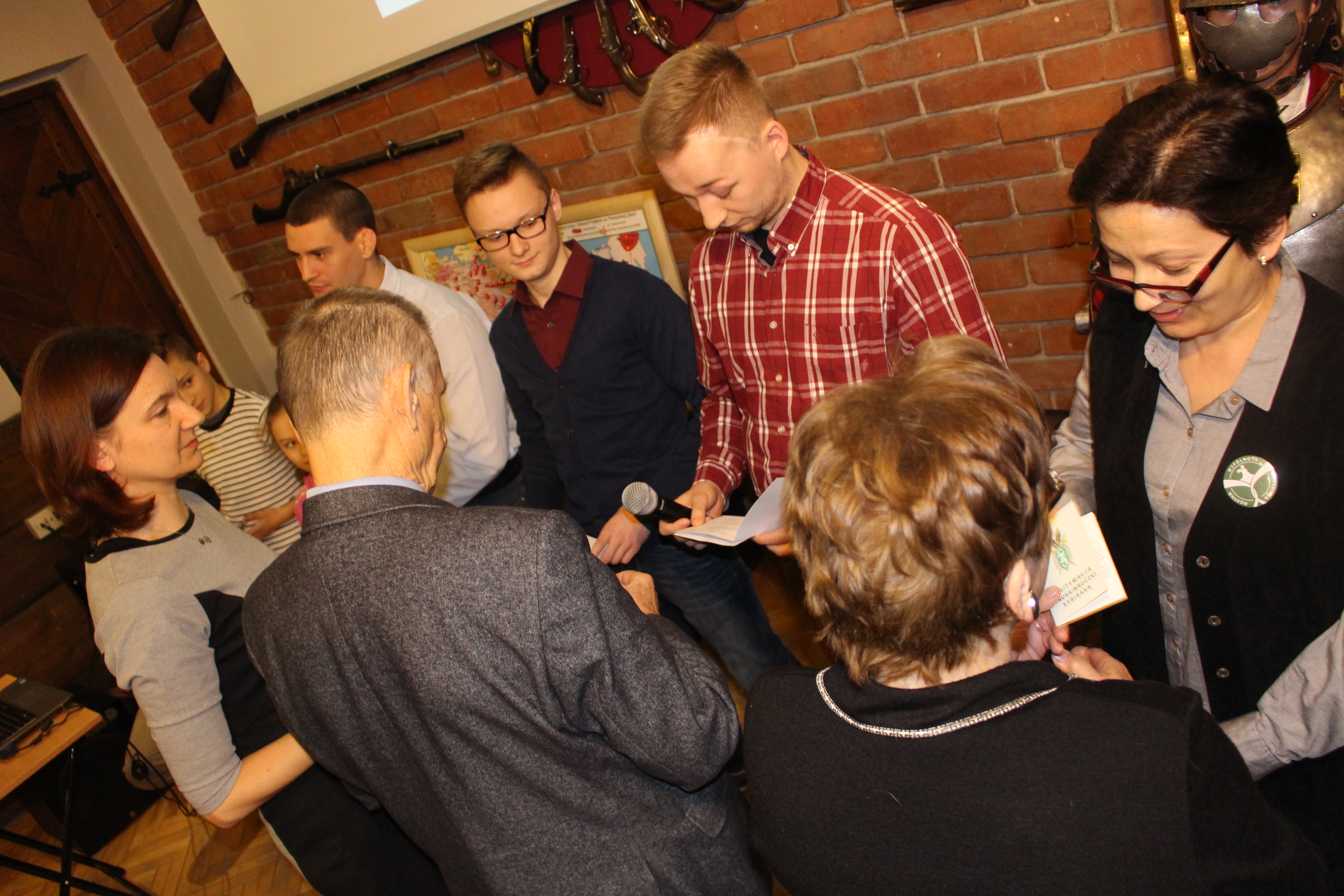 W dniach 10–11 września 2015 r. miały miejsce uroczystości związane z jubileuszowym XV Międzynarodowym Marszem Żywej Pamięci Polskiego Sybiru. Tak jak w ubiegłych latach ulicami Białegostoku przeszły tysiące uczestników z kraju i zza granicy, by uczcić pamięć ofiar deportacji. Wśród maszerujących nie zabrakło również Wspólnoty Wnuków Sybiraków. Udział w XV Międzynarodowym Marszu Żywej Pamięci Polskiego Sybiru był dla nas wielkim zaszczytem. Maszerowaliśmy dumnie, godnie wspominając tych, którym pragnęliśmy w ten sposób złożyć hołd, a więc w szczególności babcie i dziadków Sybiraków. Po raz pierwszy byliśmy z własnym logo i transparentem – naszymi znakami, zaprojektowanymi przez Barbarę Bielawiec, sekretarz Zarządu WWS. Jej autorstwa była również, wydana przez WWS, kartka pocztowa wraz z okolicznościową pieczęcią, która cieszyła się wielkim zainteresowaniem wśród Sybiraków i nie tylko. Z wielką radością obdarowywaliśmy nią obecnych na uroczystości. Spotkanie opłatkowe WWS 16 stycznia 2016 r. odbyło się kolejne już spotkanie opłatkowe Wspólnoty Wnuków Sybiraków, które zgromadziło starszych i młodszych, tych, którzy Sybir przeżyli, i tych, którzy znają go z opowieści babć i dziadków Sybiraków. Rozpoczęło się odśpiewaniem Hymnu Sybiraków. Ewangelię według św. Łukasza o narodzeniu Jezusa odczytał Maciej Panasiuk, członek Zarządu WWS, wnuk Sybiraka Józefa Panasiuka. Ks. prałat Józef Wiśniewski, kapelan białostockich Sybiraków, skierował do wszystkich obecnych życzliwe słowa. Zaśpiewaliśmy Kolędę Zesłańców z 1941 r., podzieliliśmy się opłatkiem, życząc sobie wzajemnie wszelkiej pomyślności. W spotkaniu uczestniczyli wiceprezes Zarządu Oddziału Związku Sybiraków w Białymstoku Heronima Dzierma oraz prezes Podlaskiego Stowarzyszenia Pamięci Zesłańców Sybiru Jerzy Bołtuć. Podczas spotkania prezes Zarządu WWS Paweł Tupalski podsumował działalność Wspólnoty w 2015 r. oraz przedstawił plany na 2016 r. Była też chwila wspomnień – swoje wiersze deklamował Sybirak Józef Panasiuk. Mroźny poranek pełen był dobrych życzeń i uśmiechów. 10 lutego będziemy pamiętali… 10 lutego 2016 r. obchodziliśmy w Białymstoku 76. rocznicę pierwszej tragicznej deportacji obywateli polskich na Sybir. Z tej okazji pod pomnikiem Grobem Nieznanego Sybiraka przy ul. Sybiraków 2 i pod Pomnikiem Katyńskim zostały złożone wieńce i kwiaty, zapalono znicze pamięci. W uroczystości wzięli udział m.in. Sybiracy, przedstawiciele władz miasta i województwa, służby mundurowe, nie zabrakło też przedstawicieli Wspólnoty Wnuków Sybiraków. W tym dniu wieczorem w Muzeum Wojska w Białymstoku odbyło się spotkanie zorganizowane przez Oddział Związku Sybiraków w Białymstoku, Muzeum Pamięci Sybiru i Wspólnotę Wnuków Sybiraków. Uroczystość rozpoczęła się Hymnem Sybiraków, następnie głos zabrał prezes Zarządu Oddziału ZS Tadeusz Chwiedź. Swoimi wspomnieniami z deportacji 10 lutego 1940 r. podzielili się: Heronima Dzierma (wywieziona do miejscowości Kwitok w rejonie tajszeckim, obwód irkucki) oraz Józef Panasiuk (wywieziony do Komi ASSR). Wzruszającym momentem było odczytanie wiersza przez Izabelę Wolińską, wnuczkę Sybiraczki Władysławy Mokrzeckiej. Podczas spotkania do Wspólnoty Wnuków Sybiraków przyjętych zostało sześcioro nowych członków: Iwona Skowrońska, Gabriel Dakowicz, Karol Dakowicz, Łukasz Godlewski, Stanisław Wilczyński oraz najmłodsza ośmioletnia Karolina Wilczyńska. Nowo przyjęci złożyli obietnicę Wnuka Sybiraka oraz otrzymali legitymacje WWS i znaki Wnuka Sybiraka. Cieszymy się bardzo, że nasza Wspólnota się rozrasta. Wspólnota Wnuków Sybiraków podczas XV Międzynarodowego Marszu Żywej Pamięci Polskiego Sybiru Spotkanie opłatkowe WWS Powitanie prezesa Zarządu Oddziału ZS w Białymstoku Tadeusza Chwiedzia podczas spotkania w Muzeum Wojska Wiceprezes Zarządu Oddziału Heronima Dzierma Sybirak Józef Panasiuk Wręczenie legitymacji nowym członkom Wspólnoty Wnuków Sybiraków Oprac.: Janina Rutkowska Przeczytano 120 Nawigacja wpisu Historia pewnej miłości „Cierpieniu – prawdę, umarłym – modlitwę”