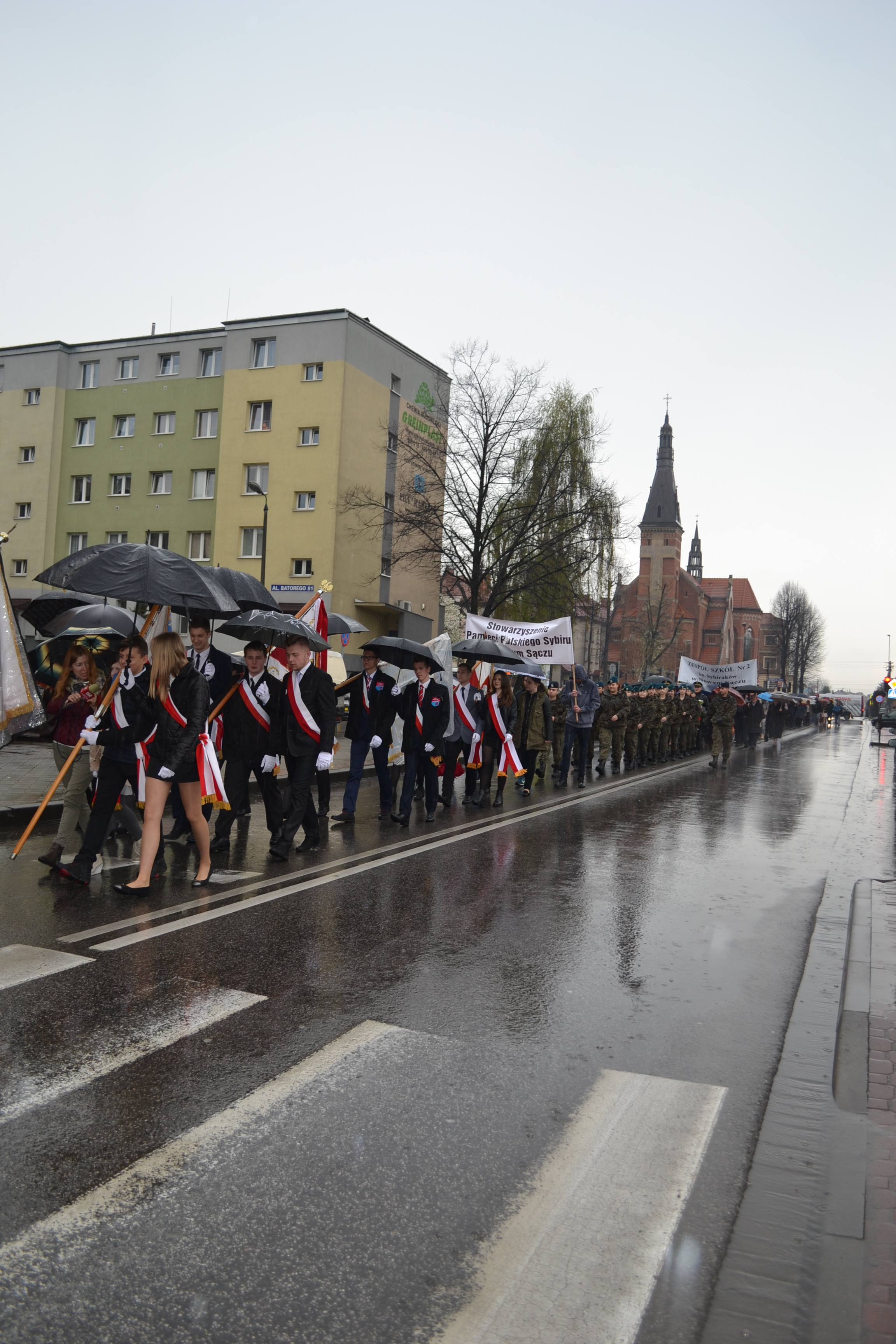 14 kwietnia 2016 r. po raz jedenasty ulicami Nowego Sącza przeszedł Nowosądecki Marsz Pamięci Sybiraków, organizowany przez Zespół Szkół nr 2 im. Sybiraków, Stowarzyszenie Pamięci Polskiego Sybiru i Związek Sybiraków. Marsz tradycyjnie poprzedziła msza święta w kościele Najświętszego Serca Pana Jezusa w Nowym Sączu. Następnie poczty sztandarowe szkół, służb mundurowych, instytucji i organizacji kombatanckich, uczniowie sądeckich szkół i mieszkańcy Sądecczyzny przemaszerowali na cmentarz komunalny. W strugach deszczu przy Grobie Sybiraka odbył się apel poległych, Kompania Reprezentacyjna Karpackiego Oddziału Wsparcia Straży Granicznej oraz członkowie Związku Strzeleckiego „Strzelec” oddali salwę honorową. Dyrektor Antonina Dzikowska serdecznie podziękowała wszystkim uczestnikom za tak liczne przybycie, pomimo bardzo niesprzyjającej aury, ale jak dodała: „na Syberii taka pogoda to byłaby igraszka”. Prezes Zarządu Oddziału Związku Sybiraków Kazimierz Korczyński przypomniał o tym, że w ciągu 25 lat istnienia nowosądeckiego Oddziału Związku Sybiraków z grona ludzi, którzy przeszli gehennę sowieckich łagrów, odeszło do wieczności 105 osób, a dziś w tej organizacji działa jeszcze tylko nieco ponad 60 Sybiraków z całego powiatu sądeckiego, gorlickiego, muszyńskiego, krynickiego. To my jesteśmy zobowiązani trwać na straży pamięci o nich i ich tragicznej historii. Przemawiając do zebranych, wiceprezydent Nowego Sącza Jerzy Gwiżdż powiedział: „Poprzez tę uroczystość chcemy złożyć hołd i wyrazić pamięć o tych wszystkich, którzy przeszli przez piekło Sybiru. Oni wszyscy pamiętali, że jeszcze Polska nie zginęła, że trzeba kiedyś wrócić na polskie ziemie, aby przekazać tę historię i to, co tam się działo. Naszym obowiązkiem jest to, abyśmy pamiętali o tym, co było. Musimy budować nowy lepszy świat. Myślę, że w Polsce jesteśmy na dobrej ku temu drodze”. Następnie składano wiązanki kwiatów pod symbolicznym Grobem Sybiraka. Przewodnicząca Samorządu Uczniowskiego Zespołu Szkół nr 2 im. Sybiraków Monika Faron, dziękując za udział w XI Nowosądeckim Marszu Pamięci Sybiraków, podkreśliła: „to nasz moralny, patriotyczny i czystko ludzki obowiązek trwać na straży pamięci o Sybirakach i ich tragicznej historii”. Msza święta w kościele Najświętszego Serca Pana Jezusa w Nowym Sączu Przemarsz ulicami Nowego Sącza Poczty sztandarowe przy Grobie Sybiraka Salwa honorowa Kompanii Reprezentacyjnej Karpackiego Oddziału Wsparcia Straży Granicznej oraz członków Związku Strzeleckiego „Strzelec” Przemawia prezes Zarządu Oddziału ZS w Nowym Sączu Kazimierz Korczyński Złożenie kwiatów przez uczniów Zespołu Szkół nr 2 im. Sybiraków Symboliczny Grób Sybiraka na cmentarzu komunalnym w Nowym Sączu Oprac.: Renata Skowron Przeczytano 26 Nawigacja wpisu Uroczystość przekazania sztandaru Koła Związku Sybiraków w Mińsku Mazowieckim Pamiętne rocznice kwietniowe w Białymstoku w 2016 r.