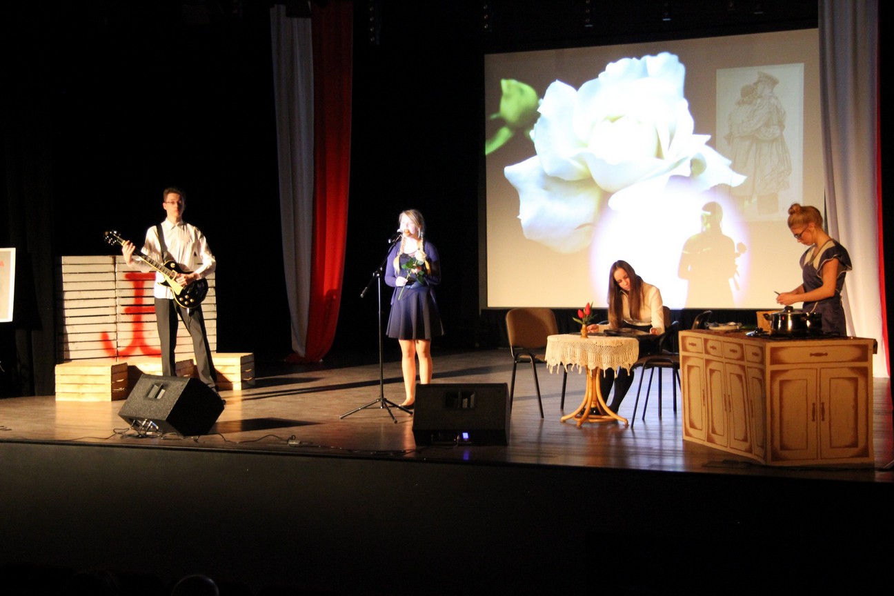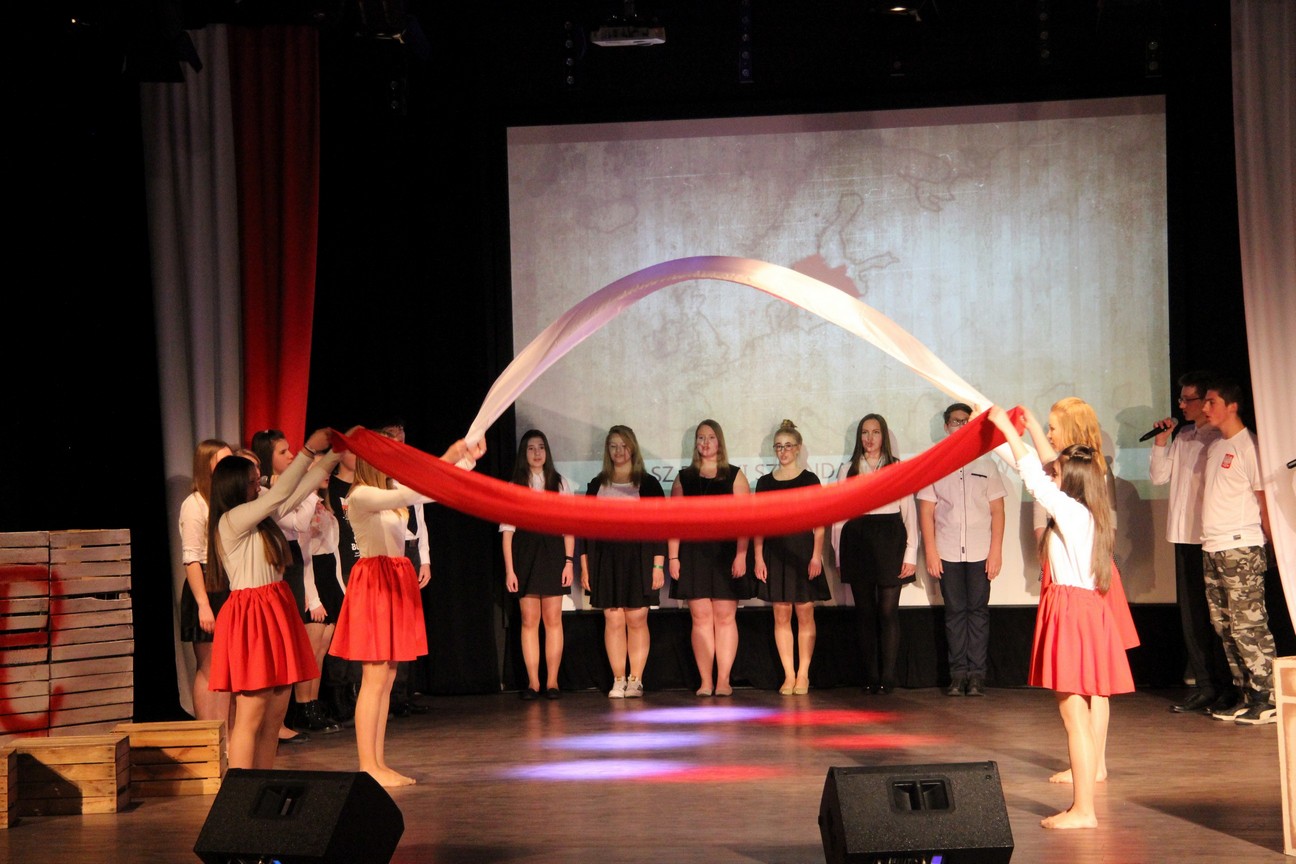 Rok temu, 14 kwietnia 2015 r., bielawskie Gimnazjum nr 1 otrzymało imię Zesłańców Sybiru. Społeczność uczniowska postanowiła uczcić pierwszą rocznicę tego wydarzenia i przypomnieć, że patriotyzm w tej szkole jest bardzo ważny. W dniu 28 kwietnia 2016 r. na deskach Teatru Robotniczego MOKiS w Bielawie odbył się musical pt. „Mam biało-czerwone serce”. Uczniowie zaprezentowali historię chłopca, który dzięki najbliższym poznał dzieje swojej rodziny i narodu. Kolejne sceny przeplatane były najpiękniejszymi pieśniami patriotycznymi oraz współczesnymi utworami. Przedstawienie dostarczyło niesamowitych przeżyć i wzruszyło widzów, którzy wypełnili po brzegi salę teatru. Po spektaklu swoimi refleksjami podzielił się z publicznością burmistrz Bielawy Piotr Łyżwa. Jedno jest pewne, uczniowie Gimnazjum nr 1 w Bielawie im. Zesłańców Sybiru mają biało-czerwone serca i nie wstydzą się tego okazywać. Musical „Mam biało-czerwone serce” w wykonaniu uczniów Gimnazjum nr 1 im. Zesłańców Sybiru w Bielawie Przemawia burmistrz Bielawy Piotr Łyżwa Oprac.: Małgorzata Jagielska, Renata Norberciak Przeczytano 23 Nawigacja wpisu VII edycja konkursu „Ocalić od zapomnienia” Dzień Polonii i Polaków za Granicą