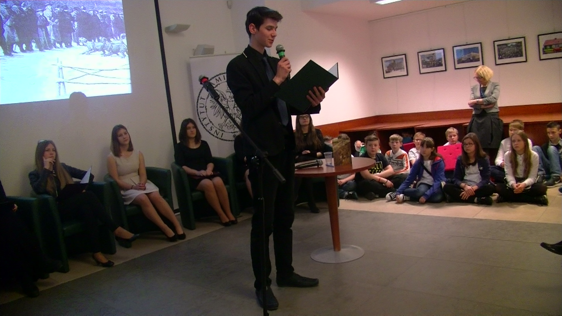 W dniu 19 kwietnia 2016 r. o godz. 10 w Przystanku Historia Centrum Edukacyjnego IPN im. Jana Kurtyki w Warszawie, w ramach cyklu „Uczniowie obchodzą ważne rocznice historyczne” odbył się spektakl o Sybirakach pt. „Losy Zesłańców Sybiru”, połączony z prezentacją filmu o tym samym tytule. Spektakl przygotowany był pod kierunkiem prof. Anny Rudzkiej i zaprezentowany przez uczniów XLVI LO im. Stefana Czarnieckiego w Warszawie. Była to niezwykła lekcja historii upamiętniająca 76. rocznicę deportacji Polaków do Związku Sowieckiego. Spektakl rozpoczął się odśpiewaniem Hymnu Sybiraków, a w jego programie znalazły się wiersze Anny Rudawcowej odnoszące się do losu zesłańców na Syberię i do Kazachstanu, uzupełnione podniosłymi pieśniami. Trzeba podkreślić wspaniałą i wzruszającą atmosferę panującą przez cały czas trwania spektaklu. Młodzież z XLVI LO im. Stefana Czarnieckiego zaprezentowała wysoki poziom artystyczny i duże zaangażowanie przez cały czas trwania spektaklu. Po spektaklu uczniowie aktorzy zostali obdarowani przez naczelnik Przystanku Historia Wiesławę Młynarczyk oraz zastępcę naczelnika Tomasza Morawskiego upominkami. Zasłużone gratulacje za przygotowanie spektaklu składano prof. Annie Rudzkiej. Również wszyscy Sybiracy obecni na sali dostali upominki okolicznościowe. Widowisko cieszyło się dużym zainteresowaniem. Oprócz zaproszonych Sybiraków udział wzięła młodzież XLVI LO im. Czarnieckiego, Technikum Architektoniczno-Budowlanego oraz dzieci ze Szkoły Podstawowej nr 209. Sala była pełna, trzeba było dostawiać krzesła, by pomieścić wszystkich chętnych. Przedstawienie obejrzeli też specjalnie zaproszeni goście ze Związku Sybiraków: wiceprezesi Zarządu Oddziału Warszawskiego Maria Stankiewicz i Leon Zujko, sekretarz Halina Bieniakońska-Żak oraz Mirosława Niekoraniec – prezes Zarządu Koła Żoliborz-Bielany, która była inicjatorką tej lekcji. Szczególne słowa podziękowania należą się pracownikom Centrum Edukacyjnego IPN za podjęty trud oraz dużą pomoc przy organizacji kolejnego spotkania młodzieży z historią. Naczelnik Przystanku Historia Centrum Edukacyjnego IPN im. Jana Kurtyki w Warszawie Wiesława Młynarczyk Występ młodzieży XLVI LO im. Stefana Czarnieckiego w Warszawie pt. „Losy Zesłańców Sybiru” Podziękowanie naczelnik Wiesławy Młynarczyk dla twórczyni przedstawienia prof. Anny Rudzkiej Oprac.: Leon Zujko, wiceprezes Zarządu Oddziału Warszawskiego Przeczytano 45 Nawigacja wpisu Pamiętne rocznice kwietniowe w Białymstoku w 2016 r. Obchody rocznicy 100-lecia Sybiraczki na Ochocie