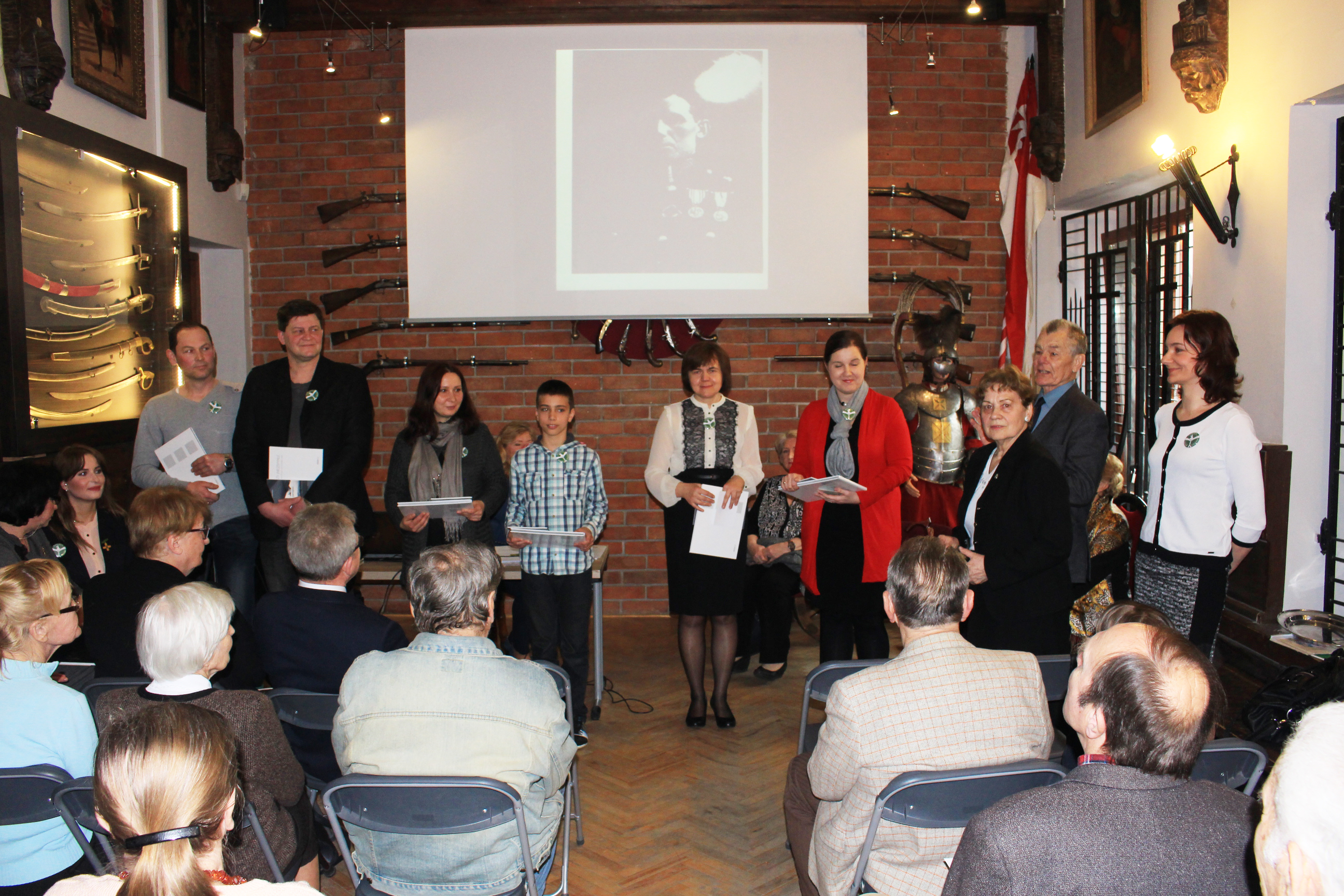W dniu 13 kwietnia 2016 r. obchodziliśmy 76. rocznicę drugiej deportacji obywateli polskich na Sybir i rocznicę zbrodni katyńskiej. Z tej okazji w Muzeum Wojska w Białymstoku odbyło się spotkanie upamiętniające te tragiczne dla narodu polskiego wydarzenia. Wzięli w nim udział świadkowie historii, którzy podzielili się z obecnymi swoimi wspomnieniami: prezes Zarządu Oddziału Związku Sybiraków w Białymstoku Tadeusz Chwiedź (wywieziony do miejscowości Pawłodar w Kazachstanie), Barbara Sokólska (wywieziona jako dziecko do Airtau w Kazachstanie) oraz Jadwiga Niwińska, której teść Antoni Niwiński zamordowany został w Ostaszkowie, a mąż deportowany do Pawłodaru w Kazachstanie, i Danuta Rybakowska, która przypomniała losy syberyjskie swojej matki – Haliny Olszewskiej, założycielki Oddziału Związku Sybiraków w Białymstoku. Podczas spotkania Odznaką Honorową Sybiraka zostali uhonorowani: Iwonna Górak, Katarzyna Górak – wiceprezes Wspólnoty Wnuków Sybiraków, Dawid Gromadzki, Lech Kozłowski, Andrzej Mieleszkiewicz. Do Wspólnoty Wnuków Sybiraków przyjęci zostali nowi członkowie: Dariusz Gliniecki, Przemysław Niewiarowski, Agnieszka Tomczuk, Dawid Tomczuk, Małgorzata Trzaska, Izabela Wolińska. Cieszymy się, że chętnych do kultywowania tradycji i pamięci historycznej jest coraz więcej. Organizatorami spotkania byli: Oddział Związku Sybiraków w Białymstoku, Wspólnota Wnuków Sybiraków, Muzeum Pamięci Sybiru Oddział Muzeum Wojska w Białymstoku, Muzeum Wojska w Białymstoku oraz stowarzyszenie Rodzina Katyńska. Prezes Tadeusz Chwiedź wręczył osobom zasłużonym dla Oddziału ZS w Białymstoku Odznaki Honorowe Sybiraka Nowo przyjęci członkowie Wspólnoty Wnuków Sybiraków Wspomnieniami z zesłania podzielił się prezes Zarządu Oddziału Tadeusz Chwiedź Sybiraczka Barbara Sokólska Jadwiga Niwińska (z prawej) przedstawiła rodzinne pamiątki z zesłania Danuta Rybakowska opowiedziała o losach zesłańczych swojej mamy Haliny Olszewskiej Oprac. Barbara Bielawiec, sekretarz Zarządu Wspólnoty Wnuków Sybiraków, zdjęcia Muzeum Wojska w Białymstoku Przeczytano 73 Nawigacja wpisu Obchody upamiętniające 76. rocznicę drugiej masowej wywózki na Sybir i 76. rocznicę mordu katyńskiego w Dębnie Dzień Pamięci Ofiar Zbrodni Katyńskiej w Słupsku w 2016 r.