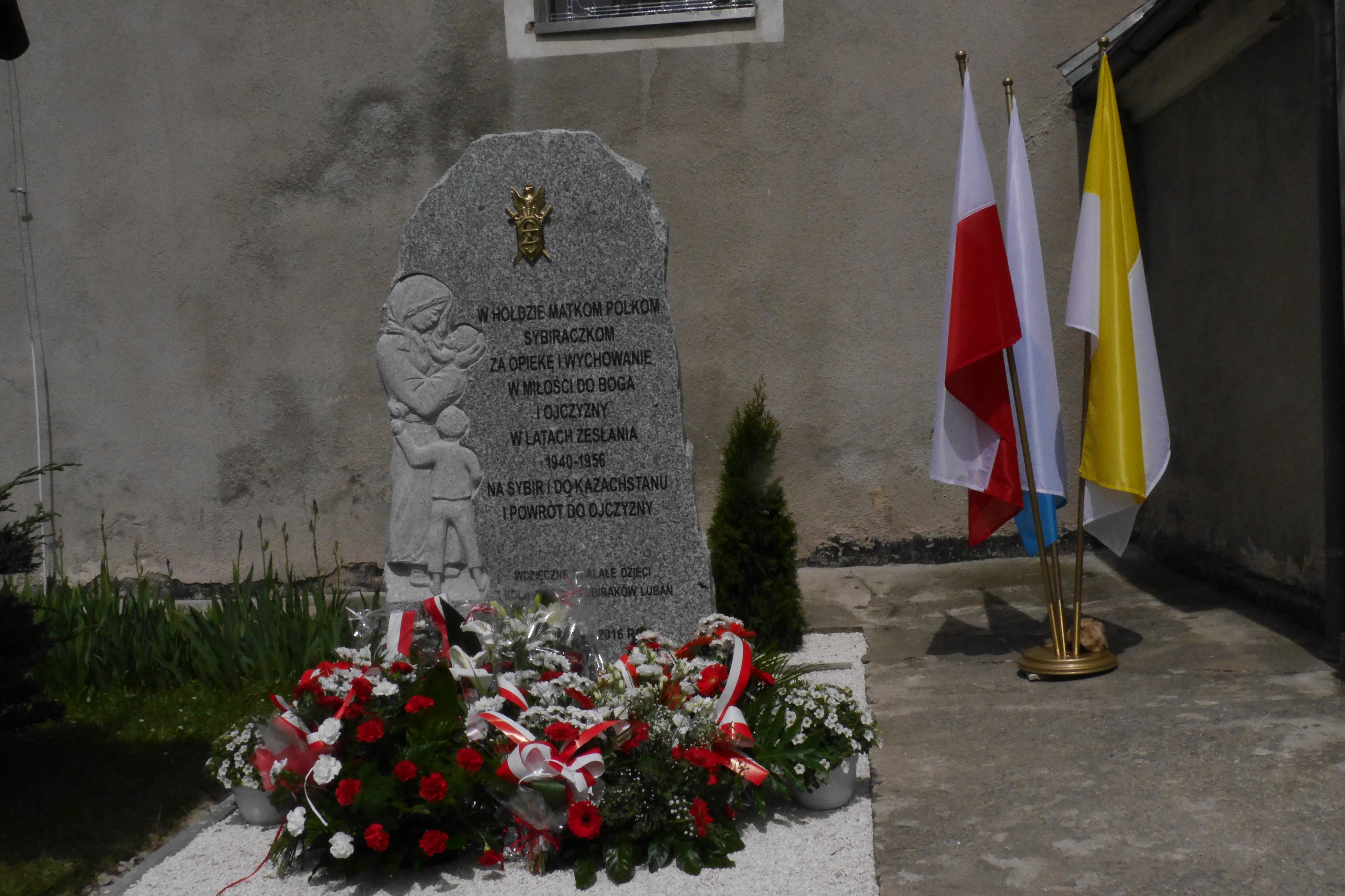 W pomniku Sybiraków, w tym zimnym Kamieniu jest wpisana smutna prawda o ludzkim cierpieniu. O Polaków poniewierce na sowieckim wschodzie, ciężkiej pracy niewolniczej I o strasznym głodzie. […] Bronisława Urgacz „Kamień Sybiraka” Z inicjatywy prezesa Zarządu Koła Związku Sybiraków w Lubaniu Romualda Karczewskiego w czerwcu 2015 r. Zarząd Koła podjął decyzję o wzniesieniu nowego znaku pamięci Polskiej Golgoty Wschodu poświęconego Matkom Sybiraczkom. Zarząd wówczas ustalił, że będzie to płaskorzeźba Matki Sybiraczki z dwojgiem dzieci, połączona z tablicą, której treść będzie wyrażać hołd żyjących dzieci – Sybiraków za opiekę i wychowanie na zesłaniu oraz szczęśliwy powrót do ojczyzny. Wybór lokalizacji był oczywisty, ponieważ na terenie gminy wiejskiej Lubań, we wsi Pisarzowice znajduje się kościół pw. Macierzyństwa Najświętszej Marii Panny. Po uzyskaniu zgody proboszcza parafii ks. Kazimierza Gębarowskiego Zarząd przystąpił do działania. Początkowo znak pamięci miał być umieszczony w kościele, ze względów obiektywnych zmieniono plany na wykonanie pomnika i wzniesienie go na terenie przykościelnym. Po uzyskaniu zgody wojewódzkiego konserwatora zabytków wyszukanie odpowiedniego kamienia w strzegomskich kamieniołomach powierzono rzeźbiarzowi Jerzemu Zyskowi, któremu zlecono wykonanie i zainstalowanie pomnika. Wspólnie z proboszczem ustalono datę odsłonięcia i poświęcenia na dzień 22 maja 2016 r., biorąc pod uwagę zbliżający się Dzień Matki. Pomnik powstał w granitowym kamieniu o wysokości 200 cm i szerokości 113 cm i został posadowiony na 30-centymetrowym cokole, na którym złotymi literami wygrawerowano treść: „»Jeśli zapomnę o nich, to Ty, Boże na niebie, zapomnij o mnie« Adam Mickiewicz”. Na kamieniu umieszczono napis: „W hołdzie Matkom Polkom Sybiraczkom za opiekę i wychowanie w miłości do Boga i ojczyzny w latach zesłania 1940–1956 na Sybir i do Kazachstanu i powrót do ojczyzny wdzięczne ocalałe dzieci z Koła Związku Sybiraków Lubań 2016 rok”. Koszt pomnika został pokryty z darowizn Sybiraków i dotacji Oddziału Związku Sybiraków w Jeleniej Górze oraz datków parafian w Pisarzowicach. Natomiast urządzeniem terenu pod pomnik i wokół pomnika zajęła się Rada Parafialna i rodzice dzieci komunijnych. Uroczystość odsłonięcia i poświęcenia została przygotowana przez Zarząd Koła przy wsparciu finansowym i rzeczowym wójta gminy wiejskiej Lubań oraz wydatnej pomocy proboszcza ks. Kazimierza Gębarowskiego i dyrektora Gimnazjum Publicznego im. Aleksandra Fredry w Pisarzowicach Ryszarda Leszczyńskiego. Wartę honorową przy pomniku pełnili strażacy z Ochotniczej Straży Pożarnej w Pisarzowicach. Na uroczystość przybyli: starosta powiatu lubańskiego Walery Czarnecki, wójt gminy Lubań Zbigniew Hercuń, posłanka na Sejm RP Zofia Czernow oraz Ewa Wołczyk w imieniu posłanki na Sejm RP Marzeny Machałek, przewodnicząca Rady Powiatu Lubańskiego Teresa Dudkiewicz-Kozań, przewodnicząca Rady Gminy Lubań Teresa Trefler, dyrektor Zespołu Szkół Zawodowych nr 2 w Lubaniu Wiktor Zdunek z delegacją uczniów, nauczycielka Zespołu Szkół Zawodowych im. Kombatantów Ziemi Lubańskiej w Lubaniu Monika Łyp, wiceprezesi Zarządu Oddziału Związku Sybiraków w Jeleniej Górze Irena Pop, Jarosław Trościanko i Mieczysław Martusewicz, prezes Zarządu Koła ZS w Zgorzelcu Mieczysław Starykow. Licznie przybyli Sybiracy i mieszkańcy Pisarzowic. W uroczystości wzięło udział siedem pocztów sztandarowych: Oddziału Związku Sybiraków w Jeleniej Górze, Kół Związku Sybiraków w Lubaniu i Zgorzelcu, Polskiego Stronnictwa Ludowego w Lubaniu, Ochotniczej Straży Pożarnej w Pisarzowicach, Zespołu Szkół Ponadgimnazjalnych im. Kombatantów Ziemi Lubańskiej w Lubaniu, Gimnazjum Publicznego w Pisarzowicach. Uroczystość rozpoczęto odegraniem Hymnu Sybiraków. Po przywitaniu gości odsłonięcia pomnika dokonał prezes Zarządu Koła Romuald Karczewski w asyście Walerego Czarneckiego, Zbigniewa Hercunia i Jarosława Trościanki. Poświęcenia dokonał ks. dziekan Andrzej Fila z udziałem proboszcza ks. Kazimierza Gębarowskiego i ks. Artura Węgla. Wiersz „Dla Matki Sybiraczki” odczytał Sybirak Wacław Lesiak. Przybyłe delegacje złożyły przy pomniku wiązanki kwiatów. Następnie wszyscy udali się do kościoła, gdzie przed rozpoczęciem mszy świętej młodzież z Gimnazjum Publicznego im. Aleksandra Fredry w Pisarzowicach przedstawiła pierwszą część poezji sybirackiej, tematycznie związaną z odsłoniętym pomnikiem Matki Sybiraczki. Scenariusz opracowała Beata Halczuk przy udziale honorowej Sybiraczki Reginy Karczewskiej. Mszę świętą celebrowało trzech księży. Wzruszającą homilię wygłosił ks. Artur Węgiel, który w oparciu o liczne wspomnienia Sybiraków przypomniał o tragicznych wydarzeniach, jakie dotknęły naród polski z rąk komunistów w latach 1940–1956. Podkreślił szczególnie wieloletni trud polskich Matek Sybiraczek – największych bohaterek niedoli. Sybiracy wzięli udział w czytaniu Pisma Świętego oraz zawołań wiernych. Przed udzieleniem błogosławieństwa ks. Kazimierz Gębarowski wyraził wdzięczność Sybirakom za pomnik Matki Sybiraczki i zaapelował do władz samorządowych, aby od przyszłego roku corocznie w parafii odbywały się gminne obchody Dnia Matki. Następnie głos zabrali zaproszeni goście: Jarosław Trościanko, Zofia Czernow, Zbigniew Hercuń, Ewa Wołczyk. Wszyscy oddali hołd polskim bezimiennym Matkom Sybiraczkom, podkreślali ich determinację, głęboki patriotyzm, wiarę w Boga, walkę o przetrwanie swoich dzieci. Podziękowanie za mszę i udział w uroczystościach złożył Romuald Karczewski. Wszyscy mówcy poparli inicjatywę proboszcza obchodzenia w parafii gminnych uroczystości z okazji Dnia Matki i przyłączyli się do życzeń składanych przez Radę Pa