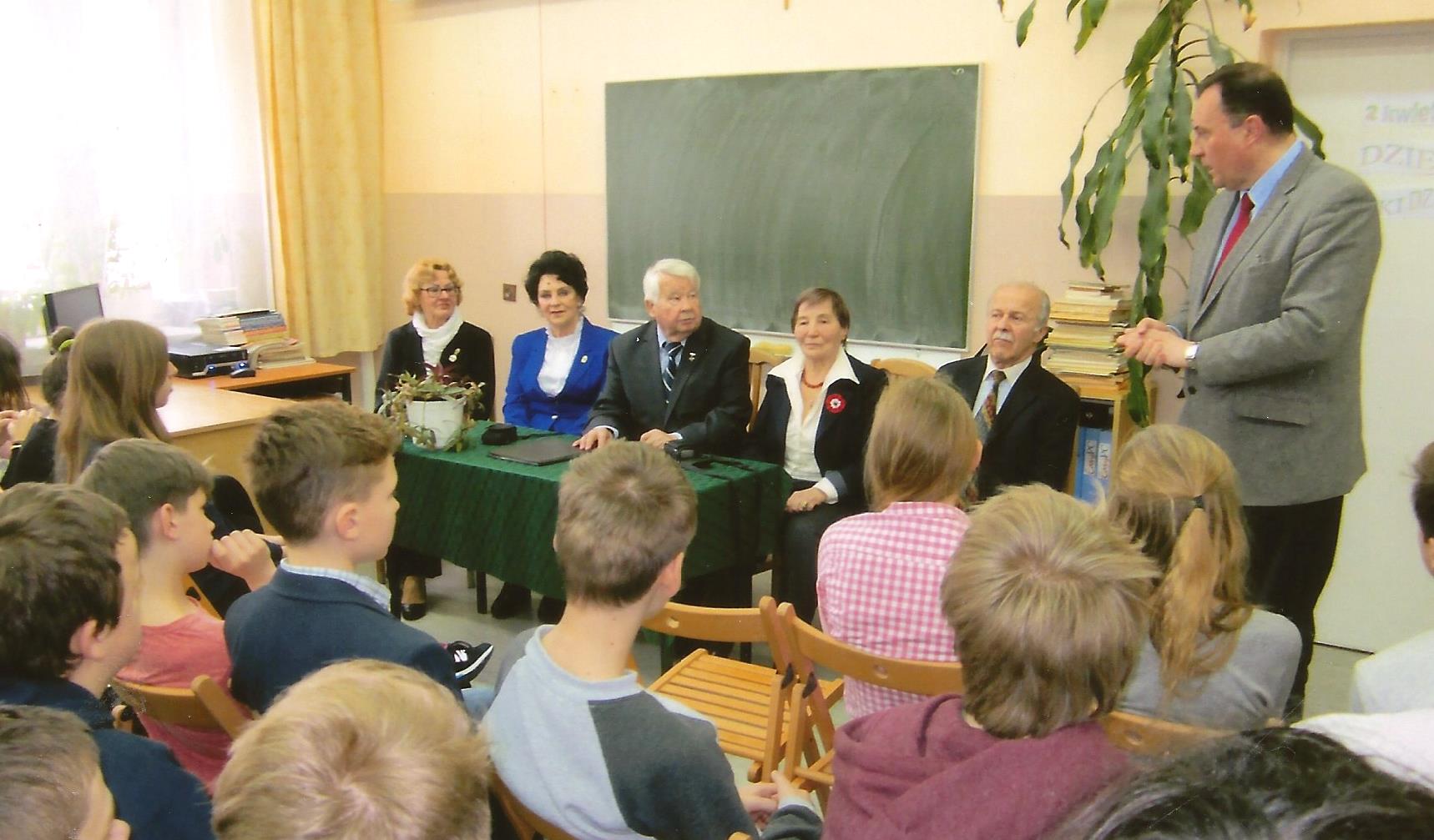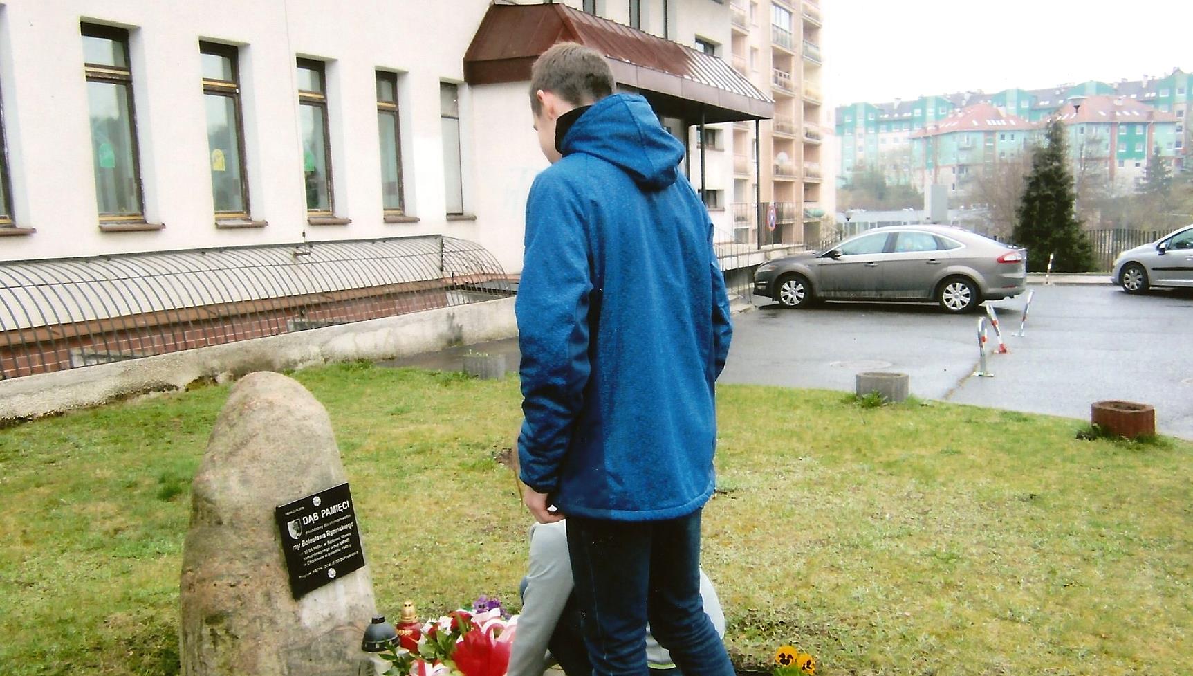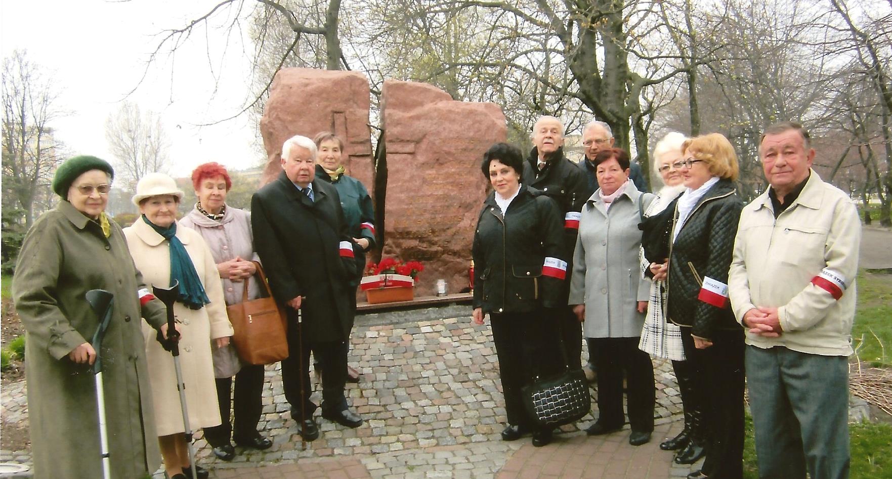 Czas nieubłaganie płynie, w tym roku mija 76. rocznica tragedii katyńskiej. Pamięć jednak pozostaje w naszych sercach. Trudno nie wracać pamięcią do tych kwietniowych, tragicznych zdarzeń. Nie bez powodu kwiecień został uznany miesiącem pamięci. Już w początkach kwietnia 1940 r. rozpoczęto tzw. rozładowanie obozów. Jeńców z Ostaszkowa przewożono do Tweru i zabijano w piwnicach Zarządu NKWD, następnie grzebano w Miednoje. Jeńców z Kozielska mordowano w Lesie Katyńskim w pobliżu Smoleńska, nad przygotowanymi uprzednio dołami. Jeńców ze Starobielska (mój tato pisał listy z tego obozu) przewożono do Charkowa i mordowano w kazamatach NKWD. Zwłoki pomordowanych chowano w podcharkowskiej miejscowości Piatichatki. W 2000 r. uczestniczyłem w otwarciu i poświęceniu tego cmentarza. Jedno zdarzenie muszę opisać. Po wyjściu z charkowskiego dworca całą grupą czekaliśmy na podstawienie autokarów. Po chwili z dworca wyszła towarzysząca nam Kompania Reprezentacyjnej Marynarki Wojennej. Stukot żołnierskich butów po twardym bruku przypomniał nam, że kilkadziesiąt lat temu po tym bruku maszerowali nasi ojcowie na śmierć. Gdy orkiestra zagrała Mazurka Dąbrowskiego, wszyscy bez wyjątku płakaliśmy. Akcję rozładowywania – mordowania bezbronnych jeńców wojennych ukończono około 20 maja 1940 r. Aby całkowicie zniszczyć polską inteligencję, równolegle, 13 kwietnia 1940 r. rozpoczęto drugą masową wywózkę na Sybir. Objęła ona przeważnie rodziny mordowanych w obozach katyńskich. W ten okrutny sposób chciano zniszczyć rodziny – ostatnich świadków i na zawsze ukryć ten mord na inteligencji polskiej. Tragiczną śmierć mojej babci Emilii oraz mamy Olgi, która do śmierci nie nauczyła się języka rosyjskiego i nie mogła przystosować się do surowych warunków, jakie panowały na zesłaniu, opisałem we wspomnieniach, jakie ukazały się w książce pt. „Pisane miłością”. Wspomnę jedynie krótkie zdarzenie, jakie miało miejsce w czasie naszej wywózki na Sybir. Gdy mama, płacząc, zapytała oficera, gdzie nas zabierają, odpowiedział: „Czego ty rywiosz, ryczysz, my ciebie do męża wieziemy”. Tyle kłamstwa i obłudy w tym krótkim zdaniu. Często zastanawiam się, co czuł i myślał mój tata w obliczu śmierci, śmierci, która jest szczególnie bolesna dla żołnierza, który jeżeli ginie – to w boju. „Pamiętajcie!”. Prawdopodobnie taki okrzyk wydał mój tata Bolesław Ryziński, gdy w piwnicach NKWD strzelano mu w tył głowy. Boże… Czy pamiętamy? Czy będziemy pamiętać? Nie zapomnimy nigdy! Mamę zawsze postrzegałem jako dobrą, ciepłą osobę, do której można się przytulić, której można pożalić się i wypłakać. Taką pamiętam i taka była do końca jej męczeńskiej śmierci na zesłaniu. Tatę natomiast pamiętam z mojego poziomu dziecka jako dużego mężczyznę, który w każdej sytuacji da sobie radę, nikt go nie pokona. Jako dziecko takich rodziców pamiętam, zostali w różny sposób zamordowani przez nienawistny system sowiecki. O tragedii katyńskiej już na Syberii dochodziły do nas skąpe wiadomości, jednak wierzyliśmy, że nasz ojciec żyje. Mama do śmierci wierzyła, że jej mąż zdołał się w jakiś cudowny sposób uratować. Po sześciu latach pobytu na Syberii wróciłem do Polski już tylko z młodszym bratem Józiem, który mimo mojej opieki zmarł w Polsce. Na Syberii pozostała moja mama Olga i babcia Emilia Ryzińska. Zostałem sam bez opieki, pomocy czy też zwykłej rady, jak mam żyć. Po uzyskaniu pełnej niepodległości, wspólnie z Gdyńską Rodziną Katyńską staramy się zachować pamięć o naszych bliskich pozostałych na „nieludzkiej ziemi” i zamordowanych w Katyniu. Obietnice spełniamy w różny sposób. Piszemy wspomnienia i artykuły do różnych wydawnictw z nadzieją, że może ktoś kiedyś je przeczyta i będzie o nas pamiętał. Koło nasze nawiązało współpracę z kilkoma szkołami, z którymi ściśle współpracujemy. W 2005 r. przekazaliśmy nasz pomnik „W Hołdzie Zesłańcom Sybiru” specjalnym aktem erekcyjnym pod opiekę młodzieży IX Liceum Ogólnokształcącego im. Marszałka Józefa Piłsudskiego w Gdyni. Młodzież pod kierownictwem wychowawców ze swoich obietnic rzetelnie się wywiązuje. W kilku gdyńskich szkołach uroczyście posadziliśmy dęby pamięci. Szczególnie w kwietniu spotykamy się w tych szkołach na lekcjach, na których opowiadamy w sposób zrozumiały dla młodych ludzi o naszych odczuciach w czasie tragicznego okresu zesłania. W czasie ostatniego pobytu w jednej ze szkół w Gdyni spotkała mnie zabawna historia, wychodzący uczeń (około 13 lat) dotknął mojej ręki i powiedział: „Długo będę pamiętał, że trzymałem za rękę Sybiraka”. Takie żywe, naturalne spotkania z młodzieżą pod pomnikami, dębami czy na lekcji historii pozostaną na długo w ich pamięci. 13 kwietnia 2016 r., jak co roku, o godz. 11.00 spotkaliśmy się pod naszym pomnikiem „W Hołdzie Zesłańcom Sybiru”, gdzie po krótkiej modlitwie wspominaliśmy kwietniową wywózkę 1940 r. Każdy z nas tam kogoś stracił, łzy same płynęły nam z oczu. W tym samym dniu o godz. 14.00 na Cmentarzu Wojskowym w Gdyni-Redłowie odbyła się główna uroczystość pamięci mordu katyńskiego. Szczególnie ucieszyła nas licznie uczestnicząca młodzież gdyńskich szkół. Władze miasta reprezentował przewodniczący Rady Miasta, przybyły liczne delegacje kombatanckie oraz Kompania i Orkiestra Reprezentacyjna Marynarki Wojennej, która dodaje blasku uroczystości. Sił i zdrowia mamy coraz mniej. Ale staramy się pozostawić swoim potomnym, a szczególnie młodemu pokoleniu wiadomości o tych tragicznych czasach. W ten sposób spłacamy dług wdzięczności za uratowanie nam życia. Dyrektor Zespołu Szkół nr 13 Andrzej Gogola przedstawia młodzieży Sybiraków przybyłych na spotkanie Aleksander Ry
