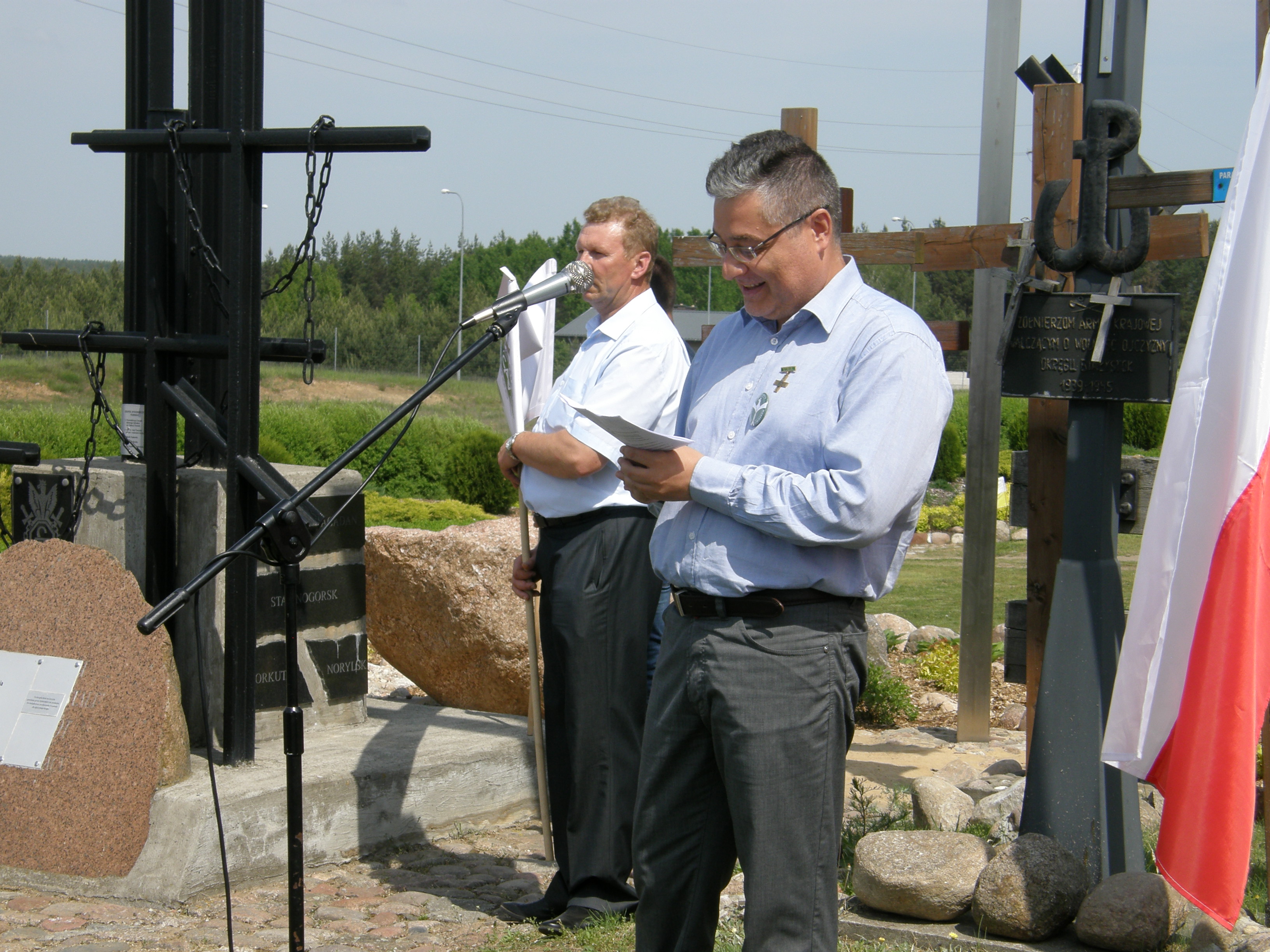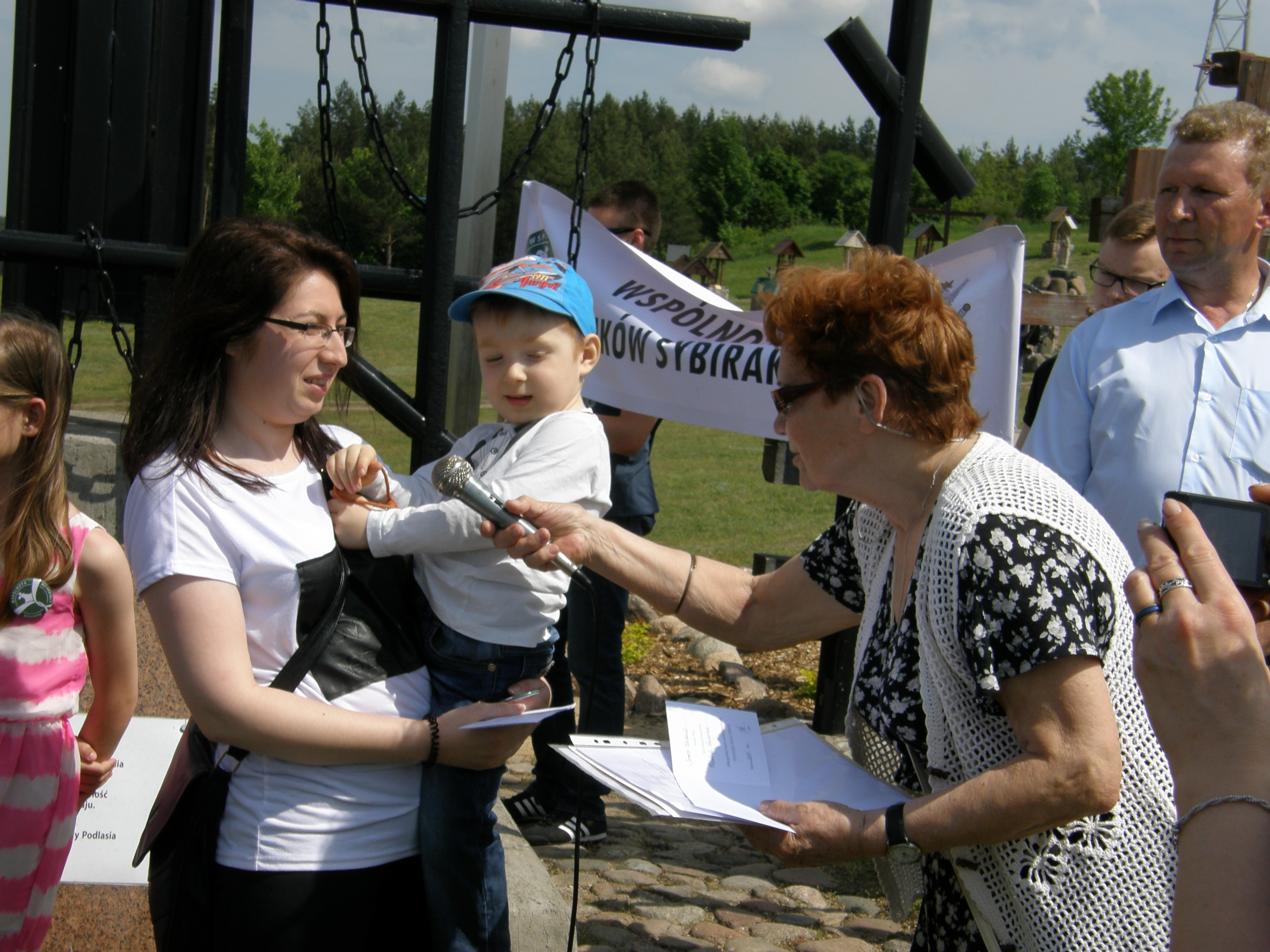 28 maja 2016 r. w Sanktuarium Matki Boskiej Bolesnej w Świętej Wodzie koło Wasilkowa odbył się II Sybiracki Piknik Rodzinny. W uroczystości wzięli udział m.in. prezes Zarządu Oddziału Związku Sybiraków w Białymstoku Tadeusz Chwiedź, prezes Podlaskiego Stowarzyszenia Pamięci Sybiru Jerzy Bołtuć, prezes Wspólnoty Wnuków Sybiraków Paweł Tupalski, przedstawiciele Związku Sybiraków i wnukowie Sybiraków wraz z rodzinami i przyjaciółmi. Przed godz. 10 wszyscy zgromadzili się w kościele, gdzie z wielkim wzruszeniem wysłuchali wystąpienia prezesa Tadeusza Chwiedzia o heroicznych losach Matek Sybiraczek. Następnie odprawiona została msza święta w intencji Matek Sybiraczek, którym zawdzięczamy to, że przeżyliśmy gehennę syberyjską. Wnukowie i Sybiracy aktywnie uczestniczyli w nabożeństwie: czytanie odczytała Ola Tupalska, psalm – Hania Tupalska, modlitwy wiernych – Sybiracy i wnukowie Sybiraków, na tacę zbierał Paweł Tupalski, prezes Zarządu WWS. Po mszy świętej procesyjnie, na czele ze sztandarem Oddziału Związku Sybiraków w Białymstoku i transparentem Wspólnoty Wnuków Sybiraków skierowaliśmy się do Groty Matki Boskiej Bolesnej, aby pomodlić się wezwaniami Litanii Loretańskiej. Następnie udaliśmy się do Krzyża Pamięci i Wdzięczności Sybiraków na Górze Krzyży. Tu odbyła się oficjalna część II Sybirackiego Pikniku Rodzinnego. Na wstępie wspólnie odśpiewaliśmy Hymn Sybiraków. Do grona Wspólnoty Wnuków Sybiraków przyjęliśmy nowych członków – wnuków i prawnuczki Sybiraków: Aleksandrę Tupalską i HannęTupalską – prawnuczki Haliny i Czesława Kuczyńskich oraz Haliny Olszewskiej, założycielki Oddziału ZS w Białymstoku, Cezarego Michała Niedziółkę – wnuka Zdzisława Adamowicza z Drohiczyna oraz Janusza Skarzyńskiego – wnuka Konstantego Skarzyńskiego. W hołdzie Matkom Sybiraczkom Jolanta Hryniewicka, Heronima Dzierma, Janina Rutkowska i Barbara Sokólska wzruszająco deklamowały wiersz Mariana Jonkajtysa „To o Was, Bezimienne…”; swój wiersz poświęcony matce odczytał Sybirak Józef Panasiuk. Na koniec odśpiewano pieśń „Matka Sybiraczka” (słowa: Aleksandra Girycz, Sybiraczka z Ząbkowic Śląskich), złożono kwiaty przy Krzyżu Pamięci i Wdzięczności Sybiraków i zapalono znicze. Po części oficjalnej odbyło się ognisko integracyjne z kiełbaskami. Uczestnikom dopisały pogoda i humory. Bardzo uradowały uczestników pikniku podarowane im kubki pamiątkowe z logo Wspólnoty Wnuków Sybiraków oraz Związku Sybiraków. Mamy nadzieję, że za rok znowu spotkamy się w tak miłym gronie. Dziękujemy serdecznie wszystkim, którzy wzięli udział w pikniku, a nade wszystko naszym sponsorom. II Sybiracki Piknik Rodzinny w Świętej Wodzie. Pośrodku od lewej sekretarz Zarządu Oddziału ZS w Białymstoku Jolanta Hryniewicka i prezes Zarządu Oddziału Tadeusz Chwiedź Nowo przyjęci członkowie Wspólnoty Wnuków Sybiraków: Aleksandra Tupalska i Hanna Tupalska (na górnym zdjęciu) oraz Cezary Michał Niedziółka (u dołu) Od lewej: Jolanta Hryniewicka, Heronima Dzierma, Barbara Sokólska i Janina Rutkowska recytują wiersz poświęcony Matkom Sybiraczkom Przemawia prezes Wspólnoty Wnuków Sybiraków Paweł Tupalski Oprac.: Janina Rutkowska Przeczytano 71 Nawigacja wpisu Obchody Dnia Matki Sybiraczki w Warszawie Czwarta rocznica odsłonięcia Krzyża – pomnika w Rudce