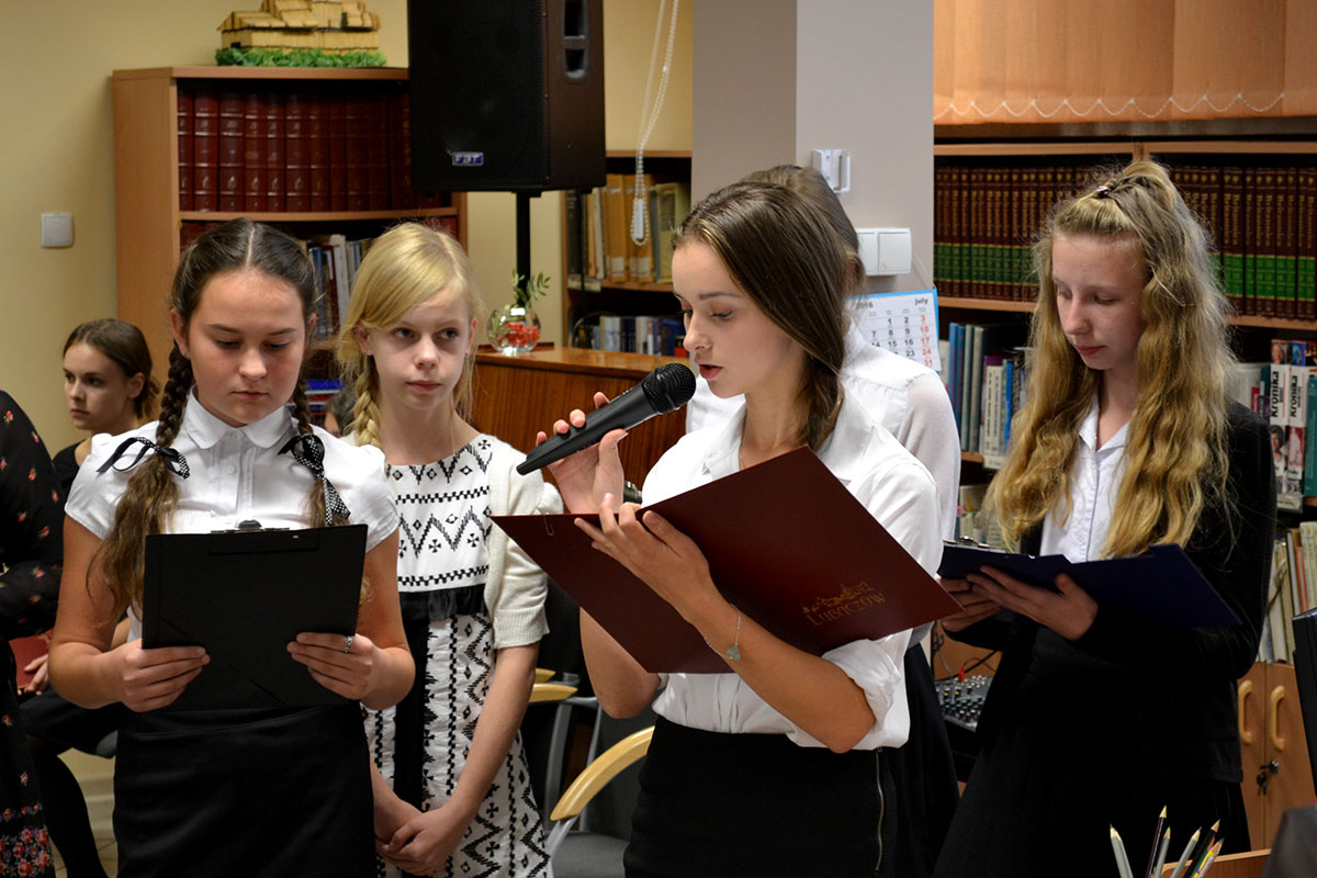 27 września 2016 r. w Miejskiej Bibliotece Publicznej im. Władysława Broniewskiego w Lubaczowie odbyło się spotkanie członków terenowego Koła Związku Sybiraków w Lubaczowie z pracownikami biblioteki, uczniami Szkoły Podstawowej nr 1 im. gen. Stanisława Dąbka w Lubaczowie, Publicznego Gimnazjum nr 1 im. Przemysława Inglota w Lubaczowie, Liceum Ogólnokształcącego im. Tadeusza Kościuszki w Lubaczowie oraz z zaproszonymi gośćmi. Spotkanie pod hasłem „Pamiętamy… wspomnienia o Syberii”, mające na celu upamiętnienie losów Polaków zesłanych na Sybir, rozpoczęło się odsłuchaniem pięknego Hymnu Sybiraków oraz przygotowanym przez młodzież krótkim rysem historycznym dotyczącym zsyłek Polaków na Sybir od czasów najdawniejszych po deportacje podczas II wojny światowej. Kolejnym punktem spotkania była prezentacja filmu „Deportacja mieszkańców powiatu lubaczowskiego na nieludzką ziemię”. Film, opracowany przez Mateusza Hypiaka, w 2012 r. zdobył pierwsze miejsce w konkursie historycznym „Wiem wszystko o mojej miejscowości”. Druga część spotkania to bolesne wspomnienia z pobytu na zesłaniu. Prezes Zarządu Koła Związku Sybiraków w Lubaczowie Mieczysław Szymoniak wspominał wywózkę swojej rodziny, która miała miejsce 10 lutego 1940 r. Młodzież z dużym zainteresowaniem wysłuchała wspomnień Teresy Mielnik i losów jej rodziny. Teresa Mielnik podzieliła się swoimi bolesnymi przeżyciami z zesłania do Kazachstanu, utratą matki i brata, losem ojca, który walczył w Armii Andersa. Opowiedziała o swoim kolejnym wyjeździe do Kazachstanu, tym razem już w 1982 r. Razem z siostrą i siostrzenicą jechały po to, by odnaleźć groby bliskich, ale po nich nie było ani śladu. Jedynie przed oczami, jak przez mgłę majaczyło miejsce, w którym najprawdopodobniej są pochowani. Lidia Argasińska z Syberii przywiozła pamiętnik, do którego wpisywały się koleżanki i towarzyszki syberyjskiej niedoli. Zbigniew Bator do dzisiejszego dnia posiada bilet powrotny do Polski z 1946 r. W spotkaniu wzięli udział także Sybiraczka Katarzyna Ilnicka oraz Sybirak Bronisław Stopyra. Członkowie wspierający Jadwiga Tabaczek i Barbara Thieme przyjęły zaproszenie. Ta część spotkania wśród przybyłej młodzieży, gości i Sybiraków wzbudziła największe emocje, widać było, że ukradkiem ocierano łzy. Historie Sybiraków wszystkich zaciekawiły i skłoniły do refleksji. Uczniowie zadawali wiele pytań. Spotkanie uświetnił wzruszający montaż słowno-muzyczny przygotowany przez młodzież. Sybiracy mają nadzieję, że zainteresowali uczniów swoimi przeżyciami, że to, co zobaczyli, usłyszeli od nich, wzbogaci ich wiedzę na temat historii II wojny światowej, której częścią byli Polacy zsyłani na daleką Syberię. Pragną też, by ta „żywa lekcja historii” pozostała w pamięci młodych ludzi. Czas złowrogiego Sybiru minął, ale pamięć o nim niech trwa! Spotkanie w Miejskiej Bibliotece Publicznej w Lubaczowie. Udział wzięli i podzielili się wspomnieniami (przy stole od lewej): Jadwiga Tabaczek, Teresa Mielnik, Lidia Argasińska, Zbigniew Bator, prezes Mieczysław Szymoniak, Katarzyna Ilnicka i Bronisław Stopyra Okolicznościowy występ młodzieży Oprac.: Barbara Janczura Przeczytano 112 Nawigacja wpisu Dzień Sybiraka w Kole Związku Sybiraków w Prochowicach Dzień Sybiraka w Dusznikach-Zdroju