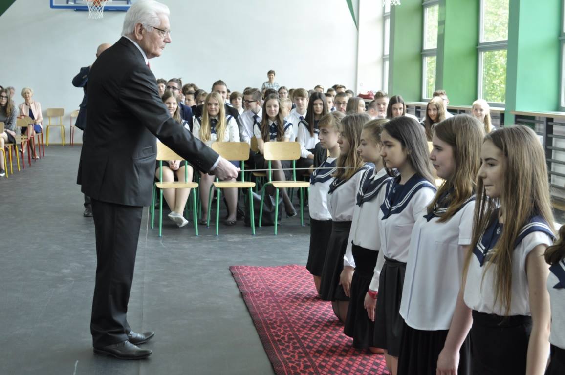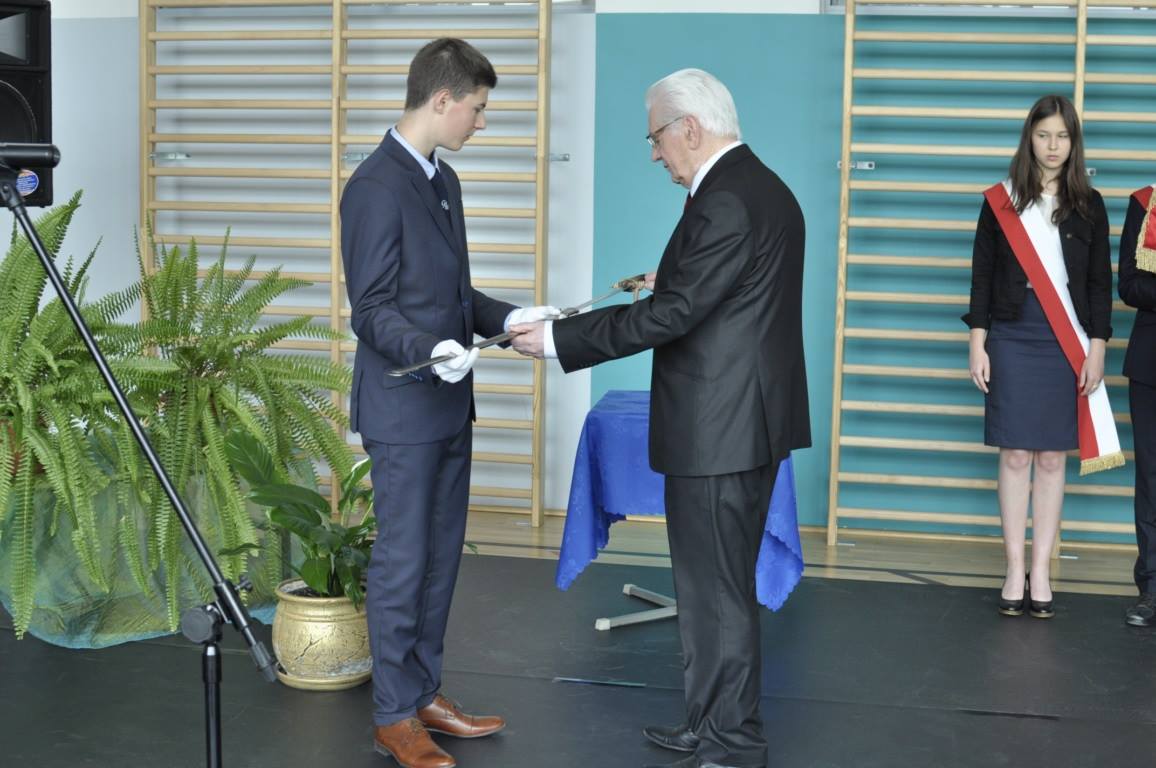 26 maja 2017 r. uczniowie ostatniego rocznika Gimnazjum nr 1 im. Przemysława Inglota w Lubaczowie uroczyście ślubowali, potem występowali i świetnie się razem bawili. Jednym z najważniejszych elementów uroczystości było ślubowanie uczniów, które należy do ważnych szkolnych tradycji. Słowa Bóg – honor – ojczyzna nawiązują do najważniejszych wartości dla wszystkich pokoleń Polaków od czasu narodzin naszej państwowości. Gimnazjaliści podczas ślubowania zobowiązali się, że i oni będą wierni tym wartościom. Po oficjalnym ślubowaniu przyszedł czas na pasowanie. Jak co roku aktu pasowania szablą oficerską Przemysława Inglota dokonał Mieczysław Szymoniak, prezes Zarządu Koła Związku Sybiraków w Lubaczowie. Przekazanie szabli oficerskiej Przemysława Inglota prezesowi Mieczysławowi Szymoniakowi Pasowanie uczniów i uczennic dokonane przez prezesa Zarządu Koła ZS w Lubaczowie Mieczysława Szymoniaka Ślubowanie gimnazjalistów Autor: Barbara Janczura Przeczytano 22 Nawigacja wpisu Dzień Matki w Bydgoszczy III Sybiracki Piknik Rodzinny