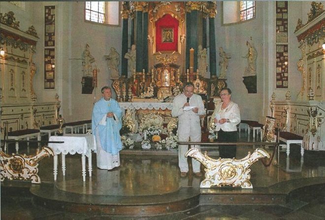 Lubuskie Oddziały Związku Sybiraków zorganizowały w dniu 26 maja 2017 r. w Sanktuarium Matki Bożej Cierpliwie Słuchającej w Rokitnie uroczystość upamiętniającą: 20. rocznicę wizyty Ojca Świętego Jana Pawła II w Gorzowie Wielkopolskim, gehennę 1 350 tys. Polaków wywiezionych w czterech masowych wywózkach na Sybir, heroizm Matek Sybiraczek, 77. rocznicę mordu katyńskiego. Zielonogórscy Sybiracy rozpoczęli uroczystość złożeniem kwiatów pod pomnikiem Matki Sybiraczki w Zielonej Górze. O godz. 12.00 w Bazylice Mniejszej w Rokitnie odprawiona została msza święta. Wezwania modlitewne odczytali Jadwiga W. Ostrowska, prezes Zarządu Oddziału ZS w Gorzowie Wielkopolskim i Fryderyk Cielecki z Oddziału ZS w Zielonej Górze. Ważnym elementem uroczystości było poświęcenie urny z ziemią ze stepów kazachstańskich i grobów Sybiraków pochowanych w Pawłodarze, którego dokonał ks. kustosz Józef Tomiak. Urnę wykonano staraniem Tadeusza Szumowskiego – aktywnego członka Klubu Pawłodarczyka. Tadeusz Szumowski na tej uroczystości występował w stroju członka Nadodrzańskiej Komandorii Zachodniopomorskiego Przeoratu Królewskiego Orderu Świętego Stanisława Biskupa Męczennika. Po mszy świętej urnę uroczyście przeniesiono do Kaplicy Zesłańców Sybiru położonej w bliskim sąsiedztwie Sanktuarium Matki Bożej Cierpliwie Słuchającej, gdzie pod tablicami poświęconymi Matkom Sybiraczkom oraz żołnierzom Sybirakom zapalono znicze. Po uroczystościach ksiądz kustosz udostępnił Sybirakom Salę Kamionkową. Tam przy herbacie prezes Zarządu gorzowskiego Oddziału Związku Sybiraków Jadwiga W. Ostrowska i prezes Zarządu zielonogórskiego Oddziału Związku Sybiraków Wacław Mandryk omówili najważniejsze problemy, którymi żyje Związek Sybiraków, po czym wywiązały się przyjacielskie rozmowy. Poczęstunek przygotowany został przez ks. kustosza Józefa Tomiaka. Oddanie honorów przez poczty sztandarowe Sybiracy, potomni i sympatycy uczestniczący w uroczystości Wezwania modlitewne odczytali Fryderyk Cielecki i Jadwiga W. Ostrowska Przemarsz pocztów i uczestników z Bazyliki Mniejszej do Kaplicy Zesłańców Sybiru Tadeusz Szumowski z urną z ziemią ze stepów kazachstańskich i grobów Sybiraków pochowanych w Pawłodarze Poświęcenie urny przez ks. kustosza Józefa Tomiaka Umieszczenie urny w niszy Kaplicy Zesłańców Sybiru Spotkanie w Sali Kamionkowej – wystąpienie prezesów Jadwigi W. Ostrowskiej i Wacława Mandryka Autor: Fryderyk Cielecki, Oddział ZS w Zielonej Górze Przeczytano 62 Nawigacja wpisu 10. rocznica nadania imienia Gimnazjum w Piławie Górnej Dzień Matki w Bydgoszczy